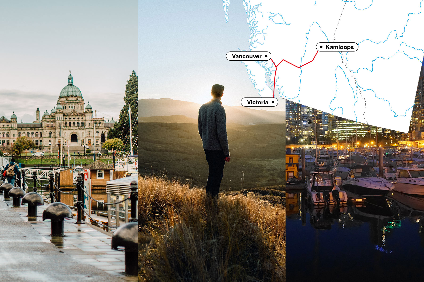 Erlebe die lebendigen Pazifik-Städte von British Columbia und erkunde das Inland mit der Crossroad-City Kamloops als Basis! Das besondere an dieser Reise: Zwischen Vancouver, Victoria und Kamloops bewegst du dich mit dem Flugzeug und sparst dir die Parkplatzsuche in der Stadt und viele Stunden auf Fähren und hinterm Steuer. Erst in Kamloops nimmst du deinen PKW auf, um von hier aus Ausflüge nach deinem Geschmack zu unternehmen.