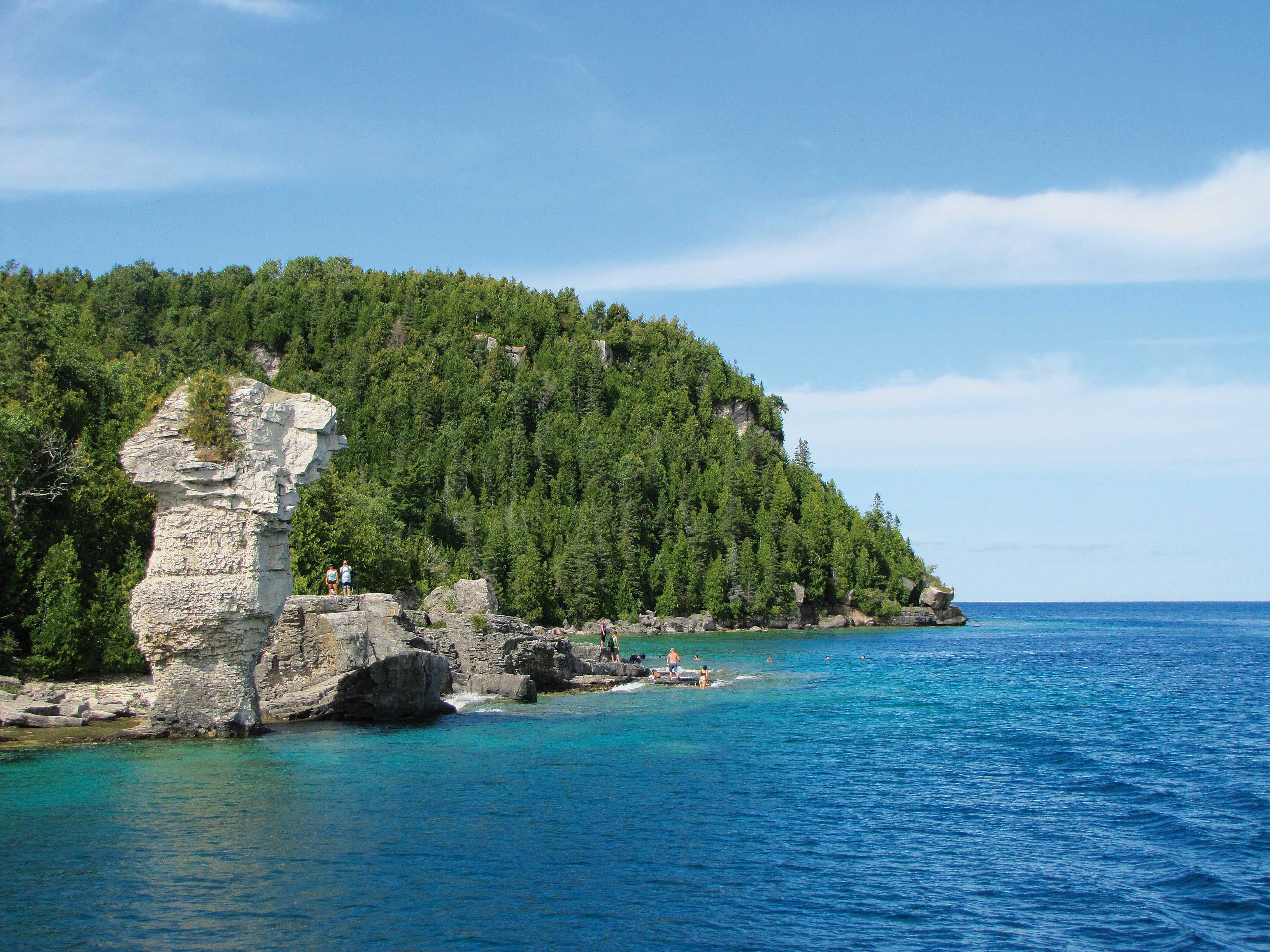 Sie planen eine Reise zur Georgian Bay in Ontario? Dann sollten Sie einen Bootsausflug ausgehend von Tobermory auf Ihre To-Do-Liste setzen! Bei strahlendem Sonnenschein ging es für mich im letzten Herbst in den Fathom Five National Marine Park, der gerade auch unter Tauchern und Schnorchlern beliebt ist. Das türkis-blau-schimmernde Wasser des Lake Huron war so klar, dass ich einige der hier versunkenen 22 alten Schiffe auf dem Grund direkt vom Deck unseres Ausflugsboots bestaunen konnte. Unsere Tour rund um Flowerpot Island führte vorbei an Landschaften aus bizarren Felsformationen und Küstenwald. Wer möchte, kann von Bord gehen und die kleine Insel mit ihrer beeindruckenden Flora und Fauna auf einer gut sechs Kilometer langen Wanderung erkunden. Auch zum Baden bleibt Zeit. Ich fand's super.