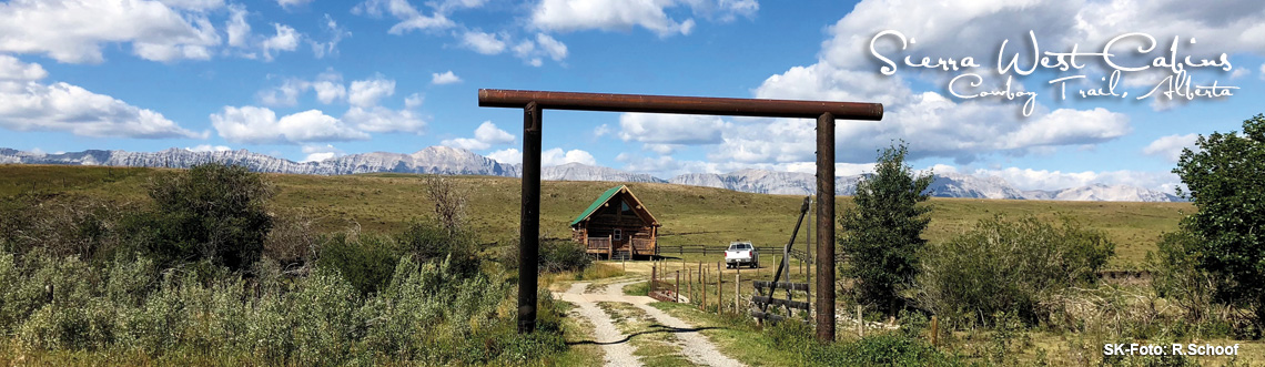 | Sierra West Cabins / Cowboy Trail | 3 Nächte | 420 km | 5 Std. | Writing-on-Stone Provincial Park, Head-Smashed-In Buffalo Jump (UNESCO World Heritage Centre), Frank Slide Interpretive Center (Crowsnest Pass), Waterton Lakes Nationalpark |
