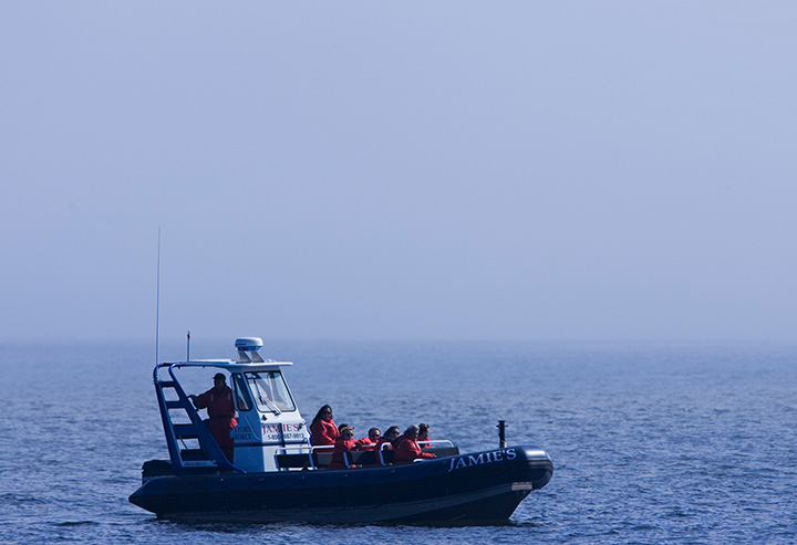 Walbeobachtungstourab/bis Ucluelet, B.C.Beste Chancen für die Beobachtung von Grauwalen. Von April bis November lassen sich die Meeresgiganten vor der Westküste Vancouver Islands sichten. In den Sommermonaten zeigen sich häufig Buckelwale in den Gewässern. Auch Orcas halten sich regelmäßig in der Region auf. Erlebe die beeindruckende Tierwelt entweder von Bord einer Motoryacht aus oder komm den Walen in einem offenen Zodiac einmal ganz nah!