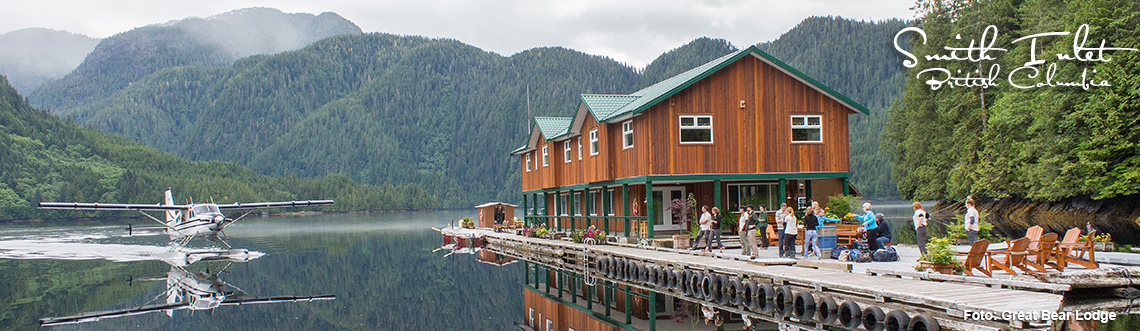 Beginn und Ende deiner Wildnis-Exkursion ist Port Hardy. Mit dem Wasserflugzeug geht es zur Great Bear Lodge, die in einer geschützten Bucht "schwimmt". Das Holzhaus wurde auf einer Floßkonstruktion errichtet und wird mit Solar- und Windkraft betrieben. Es gibt acht Gästezimmer mit privatem Bad, einen Wohnbereich und eine Veranda.