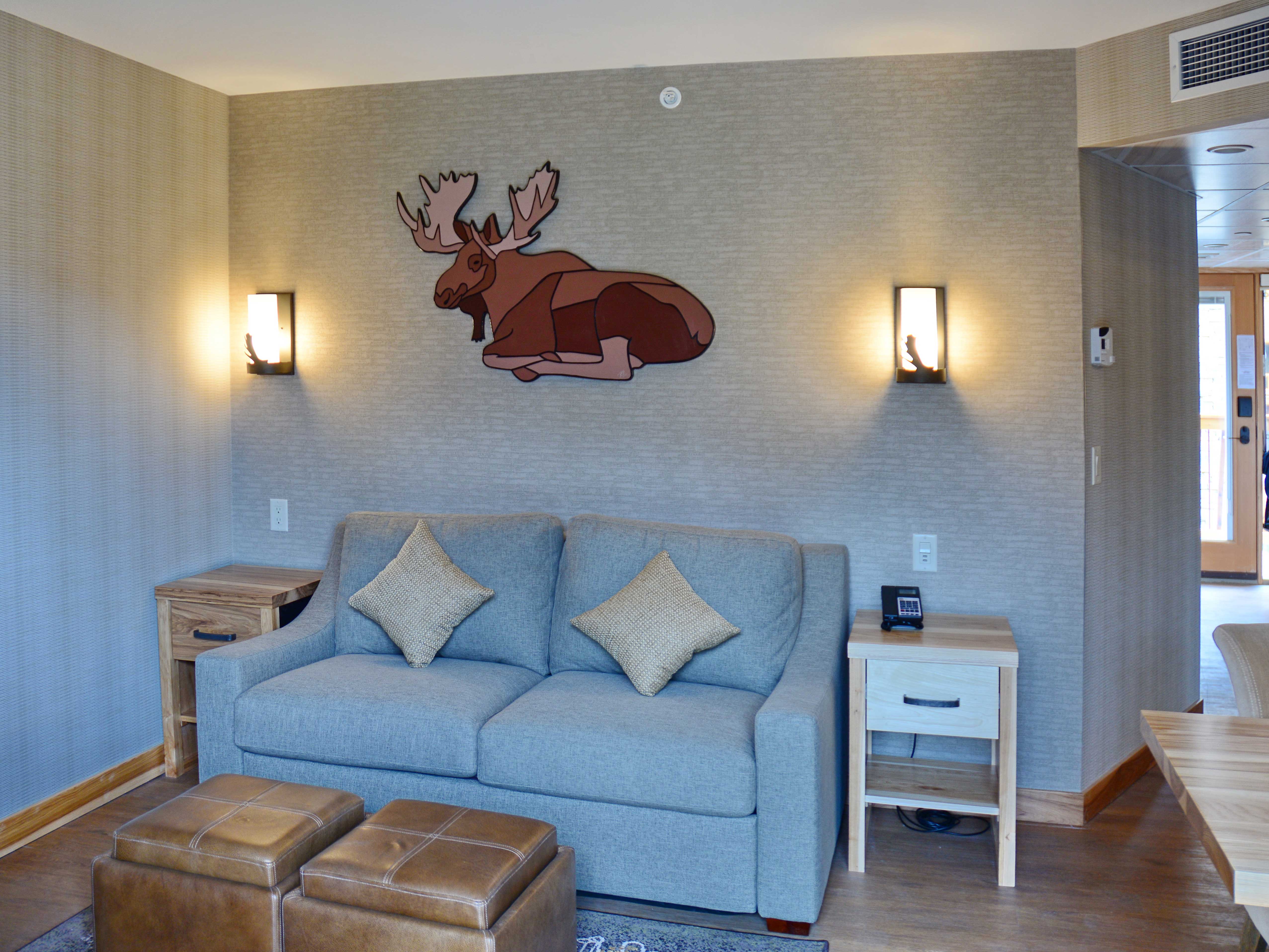 Neben Standard-Zimmern mit privatem Badezimmer, WLAN-Zugang und Fernseher ist das Moose Hotel bei seinen Gästen für die gemütlichen Suiten bekannt. Im separaten Wohnbereich hast du die Möglichkeit es sich vor dem Gaskamin gemütlich zu machen. Eine Küchenzeile mit Mikrowelle, Mini-Kühlschrank, Kaffeemaschine und Spüle geben dir eine Extra-Portion Flexibilität.