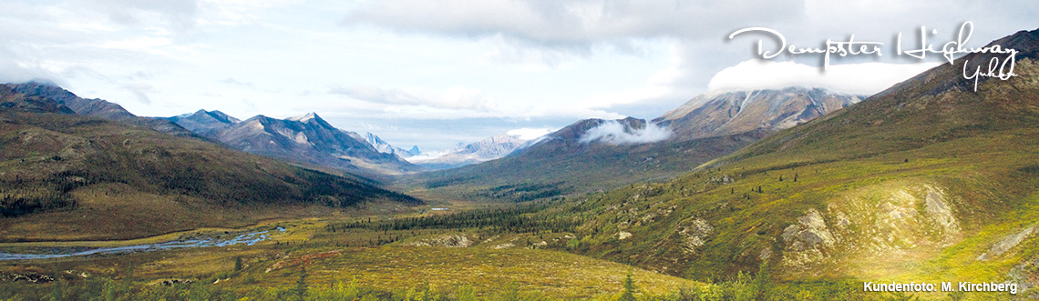 Der Campbell Highway ist nur eine der Wildnis-Schotterpisten auf dieser Route durch das Nordland. Und nur per Motorboot geht es zur Ruby Range Lodge am Ufer des Talbot Arms, einem fjordähnlichen Seitenarm des riesigen Kluane Lakes. Ein eigenes Blockhaus am See und das Lagerfeuer am Ufer – Yukon-Style! Tierbeobachtungen und Wanderungen prägen die Tour – genau wie der Flug über die Polarkreistundra oder die Fahrt auf dem Dempster Highway. Kenai Fjords und Denali National Park sind weitere Höhepunkte. Der Weg ist nicht alltäglich – er ist keine „Autobahn“. Fahrten über einsame, unbefestigte Wildnisstrecken machen das Fortkommen oft langwieriger und holpriger – aber dafür auch umso erlebnisreicher! In Inuvik besteht die Möglichkeit zu einem Ausflug nach Tuktoyaktuk, um das kleine Inuit-Dorf an der Polarmeerküste zu erkunden. Mit dem Flugzeug dann weiter nach Dawson City: Goldwaschen, Casino und Cancan. Der Top-of-the-World Highway führt über einsame Höhen nach Alaska, wo Mount Denali und schließlich Anchorage warten.