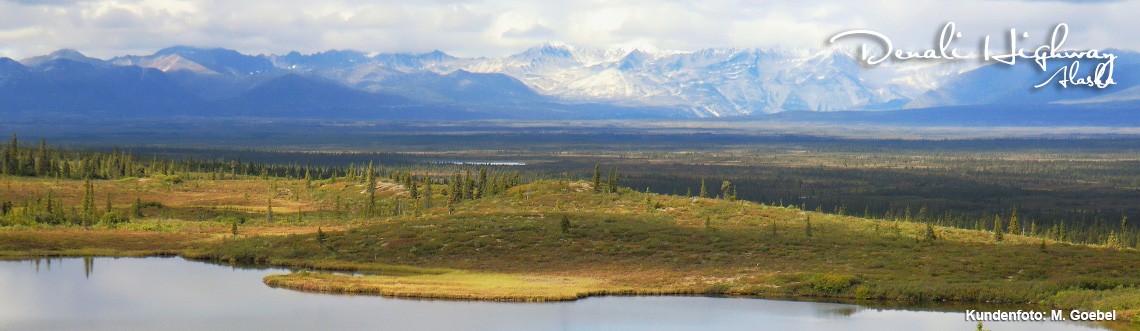 15. Tag: Fairbanks Über den Alaska Highway geht es heute in Richtung Fairbanks. Unterwegs liegen Berge und Niederungen mit Tundra- und Taigabewuchs zu beiden Seiten. Der Tangle River ist dabei Ihr stetiger Begleiter in Richtung der zweitgrößten Stadt Alaskas. Unterkunft ist das Bridgewater Hotel in Downtown Fairbanks.