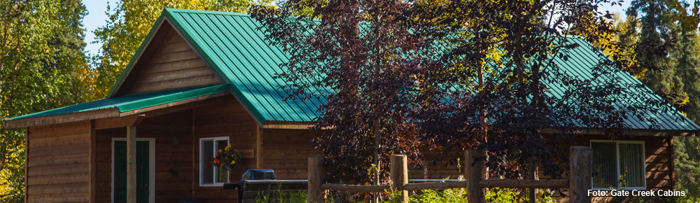 Nur wenige Kilometer südlich des Denali National Parks liegen die Gate Creek Cabins. Der Haupteingang zum Park ist etwa zwei Stunden nördlich.