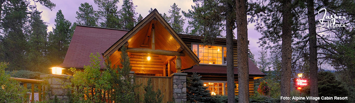 Die 48 Cabins des Resorts sind komplett aus Kiefernholz erbaut und liegen auf dem bewaldeten Areal verteilt. Die Größe der Blockhäuser reicht von kleinen One Room Cabins bis hin zu zweistöckigen Family Cabins. Alle Cabins sind mit privatem Bad ausgestattet, die meisten verfügen zudem über eine Küchenzeile bzw. eine Küche.