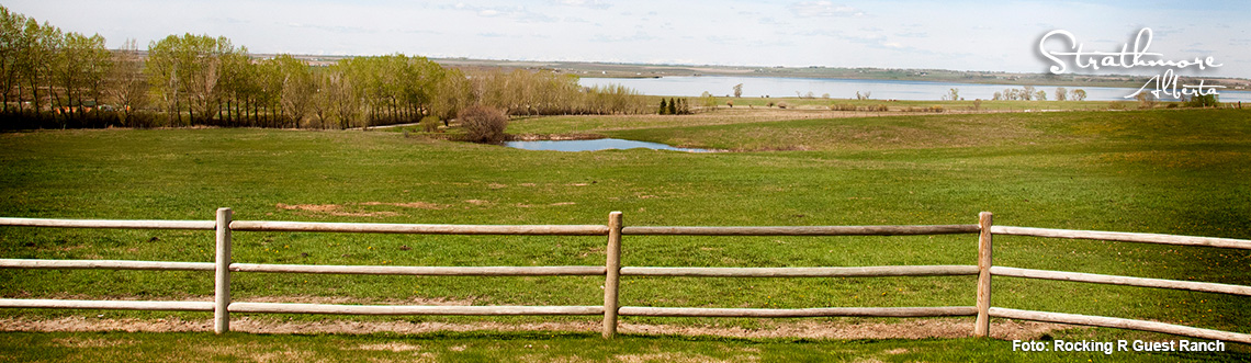 Strathmore, AlbertaInmitten der endlos scheinenden Prärielandschaft östlich von Calgary befindet sich die Rocking R Guest Ranch mit ihren beiden Cabins. Von der Ranch überblickst du die weiten Graslandschaften und den Eagle Lake.