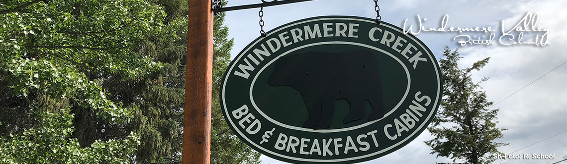 Etwa auf halber Strecke zwischen Radium Hot Springs und Fairmont Hot Springs befindet sich die Ortschaft Windermere. Zehn Minuten entfernt liegen die Windermere Creek Cabins auf einem großen, bewaldeten Anwesen.