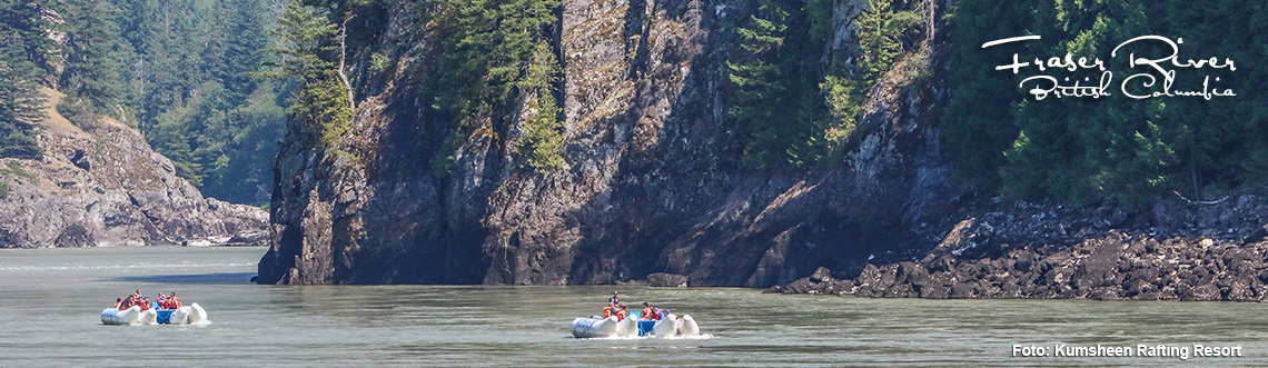 Im Süden British Columbias bahnt sich der Thompson River seinen Weg durch die raue Landschaft mit steilen Felsklippen. Zahlreiche Stromschnellen geben dem Fluss ideale Eigenschaften für ein abwechslungsreiches Rafting-Erlebnis. Ausgangspunkt für rasanten Fahrspaß ist das Kumsheen Rafting Resort, das in der Nähe von Lytton auf einem Plateau oberhalb des Thompson Rivers liegt.