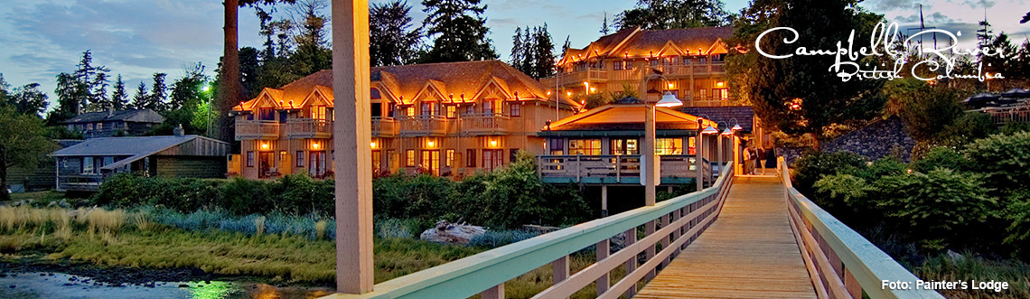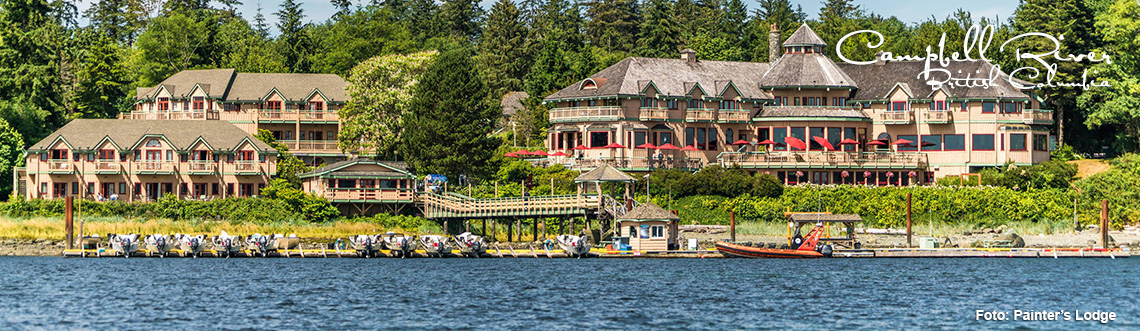 Campbell River, B.C.Das Tor zur Natur! Die Painter's Lodge liegt an der Ostküste von Vancouver Island, im nördlichen Teil Campbell Rivers. Am Ufer der Discovery Passage gelegen ist die luxuriöse Lodge sowohl ein Ausgangspunkt für Abenteuer als auch ein Ort der Entspannung.