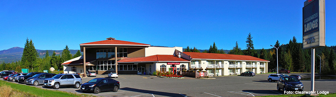 Clearwater, B.C.Das Quality Inn Clearwater (ehem. Clearwater Lodge) befindet sich im gleichnamigen Örtchen direkt vor den Toren zum Wells Gray Park. Hier scheinen die Rocky Mountains bereits zum Greifen nah und erheben sich in der Entfernung zu einem wunderschönen Panorama. In der näheren Umgebung befinden sich ebenfalls das Wells Gray Informationszentrum sowie ein Stückchen nördlich vom Ort die Spahat Falls. Ein toller Zwischenstopp, bevor es in die Nachbarprovinz geht!