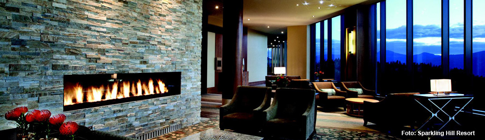 Vernon, B.C.Überwältigend: Mehr als 3,5 Millionen Swarowski Kristalle schmücken das europäisch angehauchte Sparkling Hill Resort. Das 2010 erbaute Hotel ist rund 25 Fahrminuten von Vernon entfernt. Die exponierte Lage gleich oberhalb des Okanagan Lake offenbart Ihnen traumhafte Ausblicke auf Wald, Berge und den See.
