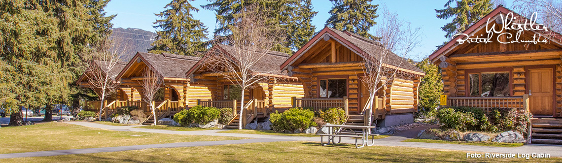 Gut einen Kilometer nördlich des Ortskerns von Whistler liegt das Riverside RV Resort mit seinen Log Cabins. Die Cabins haben ein Schlafzimmer, zwei Schlafplätze im Loft, ein Wohnzimmer mit Essbereich, eine Küche oder Küchenzeile sowie ein Bad mit Dusche. Oder du übernachtest in einer der Jurten mit Stockbett, Futon-Couch und Essbereich. Die Zelte verfügen über Strom, Heizung und Kamin. Waschräume befinden sich nahebei. Auf dem gesamten Gelände hast du WLAN-Zugang.