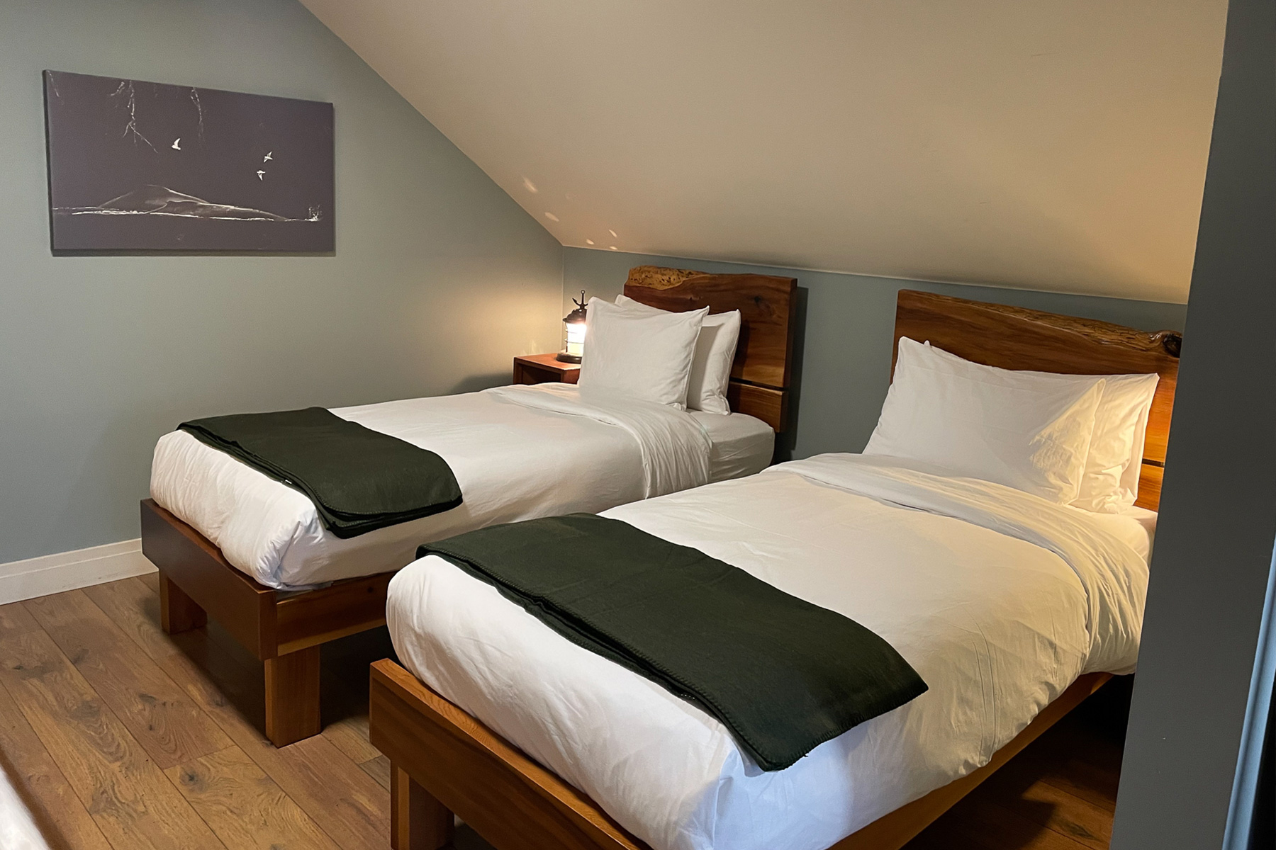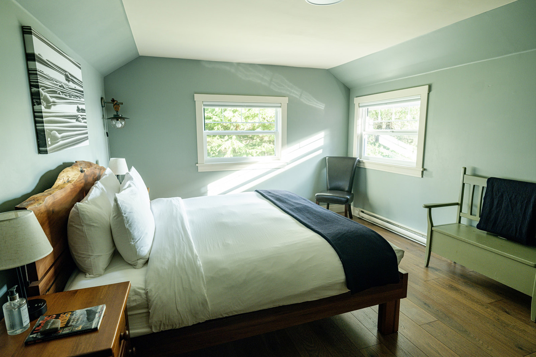 Die Lodge besitzt 5 Zimmer im zweiten Stock mit je einem King-Size Bett, das auf Wunsch in zwei Einzelbetten getrennt werden kann. Drei der Zimmer bieten Platz für Familien bis zu 6 Personen. Auf einer kleinen Klippe nahe der Lodge steht eine weitere private Cabin, ausgestattet mit einem Queen Bett, eigener Küche, Kamin, Wohnzimmer und Veranda. Von den Zimmern der Lodge hast du einen herrlichen Blick auf den Pazifik und die Broken Island Group im Norden.