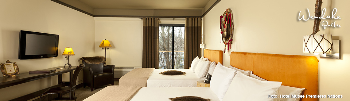 Das Hotel Musee Premieres Nations am Ufer des St. Charles River stellt eine Besonderheit unter den Hotels dar: Die Architektur lehnt sich an die eines traditionell irokesischen Langhauses an. Direkt an den Hotelbereich angeschlossen ist ein Museum, das sich mit der Geschichte und Kultur der lokalen First Nations beschäftigt. Und bei aller Tradition ist die moderne Großstadt nicht weit: 15 Minuten mit dem Auto, und schon bist du mitten in Québec City.