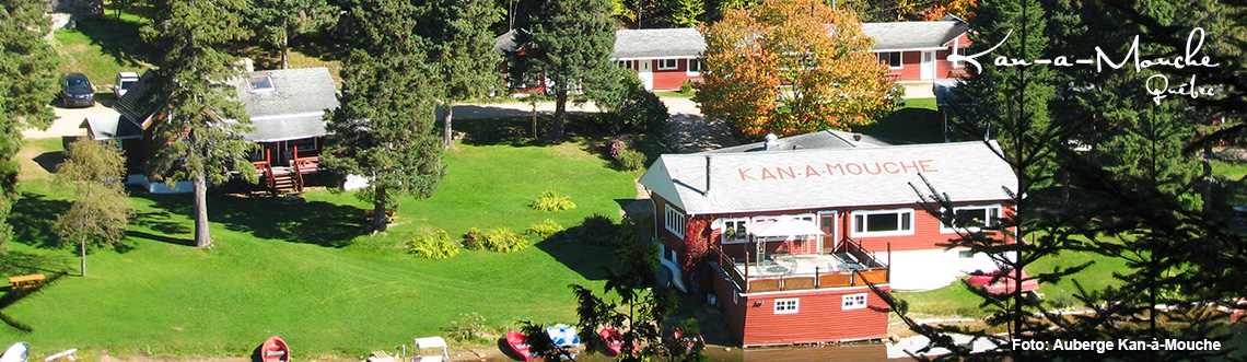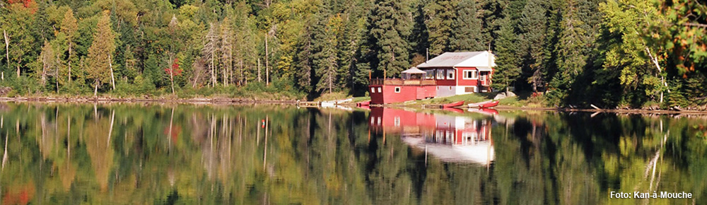 Etwa fünf Minuten von der Ortschaft Saint-Michel-des-Saints entfernt liegt das Kan-à-Mouche inmitten eines 100 Hektar großen Waldes. Die 14 Gebäude des Resorts befinden sich direkt am Ufer des Lac Kaiagamac.