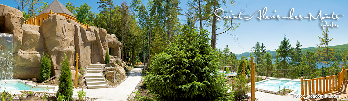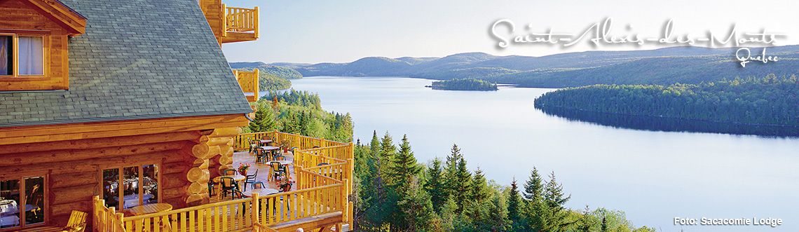 Nur rund 15 Minuten von Saint-Alexis-des-Monts entfernt befindet sich die Sacacomie Lodge inmitten der traumhaften Wälder Québecs. Sie besticht durch die herrliche Lage am kristallklaren Lac Sacacomie sowie die beeindruckende Bauweise im Blockhaus-Stil.