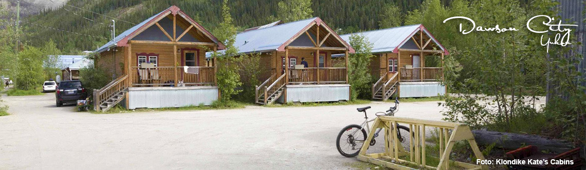 Die Klondike Kate's Cabins befinden sich im Zentrum der historischen Ortschaft Dawson City. Du fühlst dich schon bei Ankunft in Dawson in die Zeiten des Goldrausches Ende des 19. Jahrhunderts zurückversetzt. Die liebevoll restaurierten Holzhäuser des Ortes sind häufig über Holzstege miteinander verbunden.