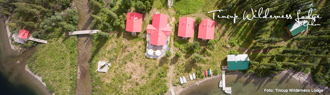 Nahe des Kluane Nationalparks im Herzen des Yukon Territories liegt die Tincup Lodge am gleichnamigen See. Das Areal umgibt meilenweit eine unberührte Landschaft. In der Ferne erheben sich die Bergketten der Ruby Range und bieten ein außergewöhnliches Panomara für ein echtes Wildnis-Abenteuer. Die nächste Straße ist über 20 Kilometer entfernt. Zu erreichen ist die Tincup Lodge ausschließlich mit dem Wasserflugzeug, das in Whitehorse oder von Burwash Landing startet. Schon der Flug ist ein einzigartiges Erlebnis. Die Lodge bietet Platz für maximal zehn Gäste. Auch private Gruppen sind herzlich willkommen.
