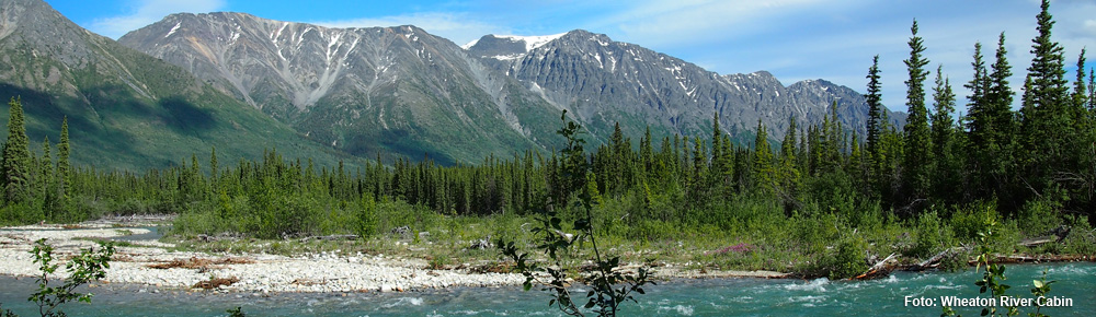 Inmitten der unberührten Natur des Yukon liegt die Wheaton River Cabin. Umgeben von hoch aufragenden Fichten steht die Blockhütte am Ufer des Wheaton River. Sie befindet sich etwa eine Autostunde nördlich der Ortschaft Carcross und 60 Kilometer südlich von Whitehorse.