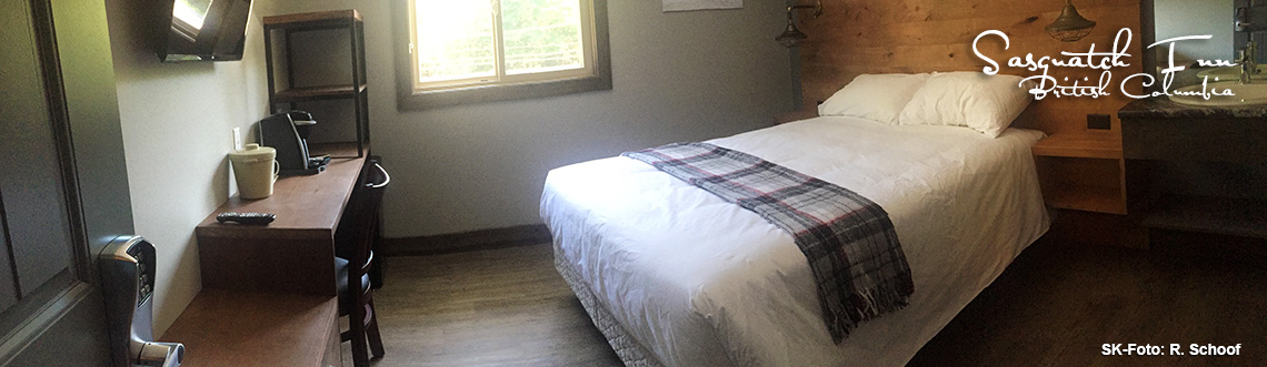 Ich kann nicht leugnen, dass mich das selbst ein Stück bewegt! Wer SK seit nunmehr 25 Jahre begleitet, weiß, dass seinerzeit alles am Sasquatch Inn angefangen hat. Unsere erste Material-Cabin steht hier immer noch. Das charismatische Sasquatch Inn am Harrison River zwischen Mission und Harrison Hot Springs war eigentlich schon immer Kult. Die perfekte Kneipe im Nirgendwo. Wie aus einem Film. Doch die Zimmer passten einfach nicht zum SK-Standard. Doch genau das hat sich jetzt dramatisch geändert: Nachdem das Inn von außen ja ohnehin schon markant aufgehübscht wurde, sind jetzt alle Zimmer der oberen Etage voll-entkernt und rennoviert worden. Hammer! Habe im Sommer meinen Augen kaum getraut. Wunderschön - und jeder Raum mit privatem Bad!