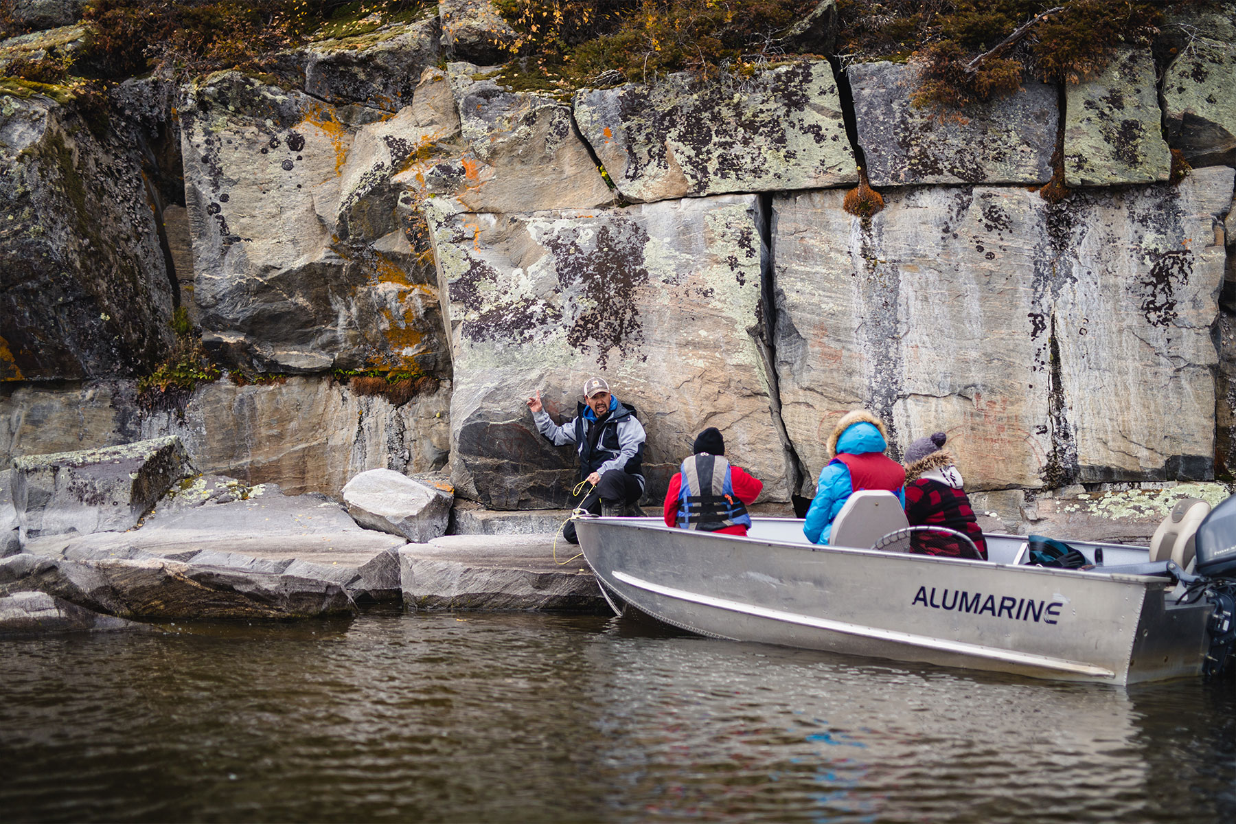 Auf Wunsch kannst du auch statt eines Angel-Tages eine Tagestour zu nahen Wasserfällen, zu Kulturstätten wie indigenen Felsmalereien oder nach Stanley Mission machen. Bei allen Touren gibt es je zwei Gästen einen Guide, die euch mittags den gefangenen Fisch zum sogenannten "Shore Lunch" am Ufer braten.