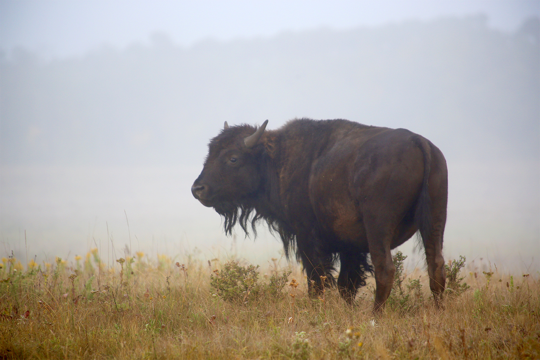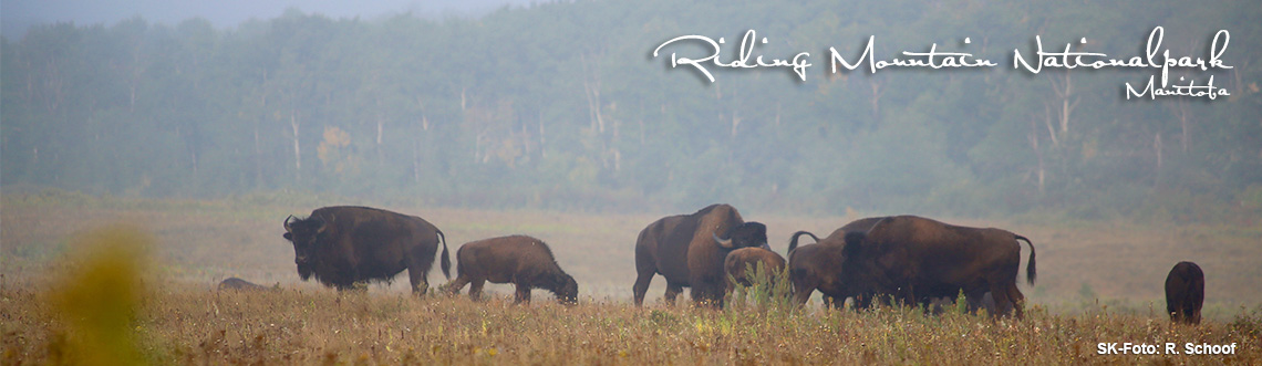 Pat steigt zu uns in den Wagen und wir fahren los. Es ist schon jetzt eine beeindruckende Morgenstimmung. Überall recken überraschte Weißwedelhirsche ihre Köpfe aus dem halbhohen Gras am Wegesrand, vor uns sehen wir noch gerade einen Schwarzbären im Unterholz verschwinden. "Jetzt links", sagt Pat und wir verlassen den Asphalt. Es geht hinein in den Wald und schon nach fünf Minuten bin ich froh, dass wir Pat dabei haben. Er kennt hier wirklich jeden Abzweig. Drei Stunden sind wir mit Pat unterwegs und ich genieße jede einzelne davon. Leider haben wir kein Glück mit den Elchen – und das passiert mir wirklich zum allerersten Mal im Riding Mountain Park, der sich ja durch seine große Elchpopulation auszeichnet! Aber die Natur ist nicht planbar und das ist auch gut so. Aber wir finden die Bisons! Auf der Südwiese kommen sie ganz nah an uns heran. Wir können uns kaum sattsehen und verbringen eine ganze Weile bei den mächtigen Tieren in dieser herrlichen Morgenstimmung. Mystisch, wie uns die mächtigen Tiere durch die wallenden Morgennebel über der farbenprächtigen Wiese vor unsere Linse stapfen! Das Geheimnisvolle trägt der gesamte Park zu dieser Stunde wie ein wunderschönes Gewand. Ein Fest für das Auge. Und überall sind wir ganz allein. Immer wieder müssen wir anhalten, um die malerischen Wald- und Seenlandschaften auf uns wirken zu lassen. Und um mit Pat zu plaudern. Über den Park, die Tiere und seine Pirschfahrten, die ihn nun auch nach seiner aktiven Zeit als Ranger weiter mit der Flora und Fauna des Parks verbinden und ihm ermöglichen, sein Wissen und seine Begeisterung für die Natur des Parks an Reisende aus aller Welt weiterzugeben.