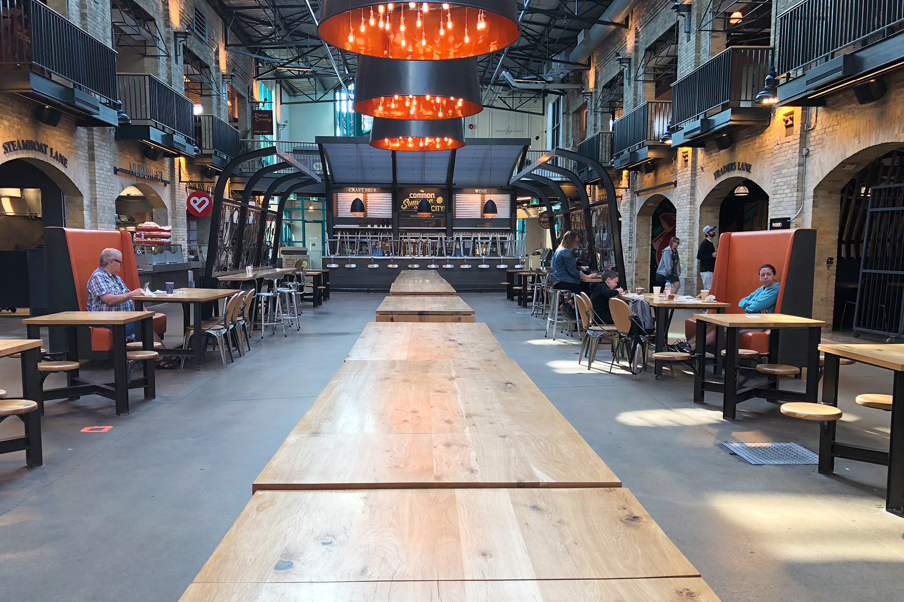 Und so sind wir selbst auf unserer Kanadareise im August frühmorgens hier in Winnipeg gelandet und finden es großartig, den Assiniboine und Red River genau jetzt in den frühen Morgenstunden ganz für uns allein zu haben. "The Forks", so heißt dieser Ort aufgrund des Zusammenflusses der beiden Flüsse mitten in der Stadt. In der Handelsgeschichte Winnipegs spielte dieser Platz eine wichtige Rolle, da die Flüsse wichtige Transportwege darstellten. Eine Handelsstation, die durch den Bau der Eisenbahn sogar noch an Bedeutung gewann. Und heute ist es so etwas wie der gesellschaftliche Herzschlag Winnipegs. Die alten Warehouses haben sich inzwischen in farbenfrohe Lokalmärkte oder stylische Restaurants und Micro-Breweries verwandelt, Musiker treten auf und am Abend tobt hier das Leben. Aber nicht am frühen Morgen. Jetzt und hier sind wir fast allein. Und das passt vor allem meinem Begleiter Tom Reissmann gut. Der Videograf, der mich auch auf dieser Reise begleitet, kann sich bei herrlichem Wetter mit seiner Kamera austoben, ohne jemanden zu stören.