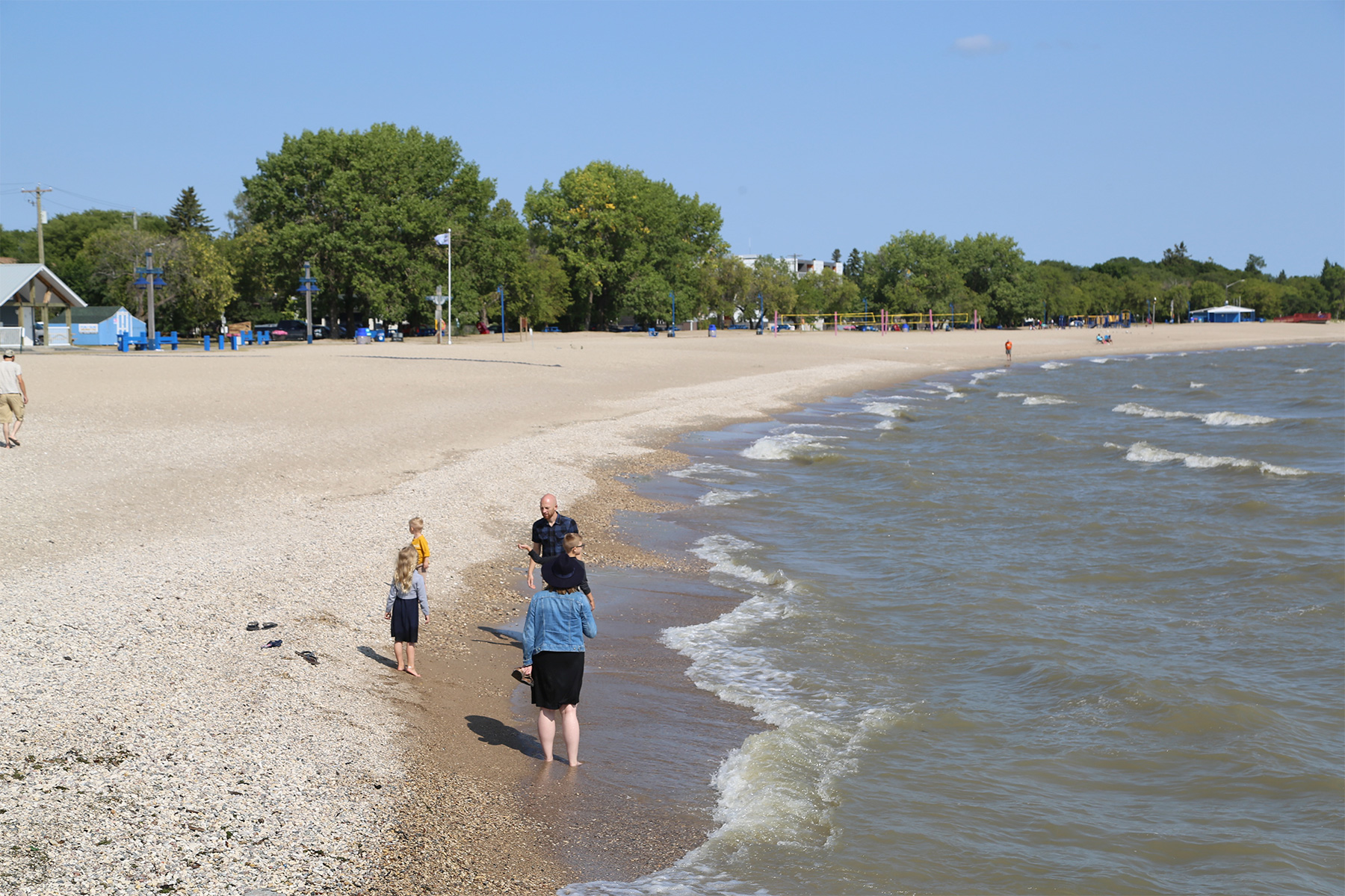 Etwa eine Stunde bis zum ersten Stop – Gimli. Ich war noch nie hier – und bin überrascht. Das ist ja richtig schnuckelig hier! Ein richtig gemütliches Strandörtchen. Irgendwie so gar nicht das, was man von der Prärieprovinz erwartet. Ich bin ja schon so einige Male durch Manitoba gereist, aber so einen Ort habe ich hier wirklich noch nie gefunden. Zunächst einmal ist der Ort eine Siedlung überwiegend isländischer Auswanderer. Man sieht es an den Namensschildern: alles "-son" und "-dottir". Und die B&Bs heißen "Gesta-Hus". Aber dann der Sandstrand, bzw. Sandkieselstrand. Er ist über 60 Kilometer lang und bei dem herrlichen Wetter heute komme ich mir fast vor wie an einem Strand in Florida. Surfboards zum Ausleihen, Strandcafés, eine Marina mit Yachten – auch Kajaks und Seadoos kann man ausleihen. Der Wind frischt etwas auf und das Gehirn verdrängt noch schneller die Erinnerung daran, dass der Lake Winnipeg ein See ist. Wellen rollenen an den Strand – ganz ehrlich, das ist doch kein See, das ist ein Meer! Überall gibt es Fish & Chips zu kaufen – natürlich mit dem hier heimischen Pickerel. Das probieren wir natürlich auch – echt lecker! Ja, und ein nettes Hotel gibt es hier in Gimli mit dem Gimli Lakeview Resort auch. Die Zimmer sind ansprechend und vom Sonnendeck des Restaurants aus blickt man direkt auf Strand und Wasser.