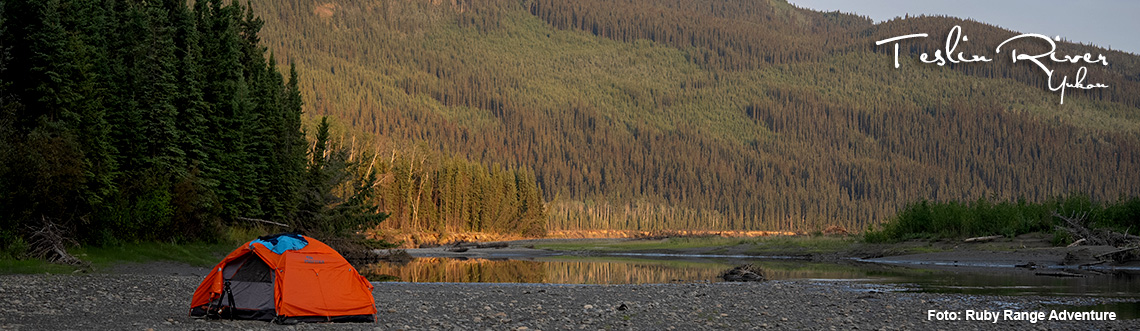 Tag 2: Whitehorse - Teslin RiverHeute geht es für dich mit dem Van über den berühmten Alaska Highway zum Startpunkt in Johnsons Crossing. Nachdem du eine gründliche Einweisung in die Handhabung des Kanus durch deinen Tourleiter bekommen hast, verbringst du einen abwechslungsreichen ersten Tag in der Wildnis des südlichen Yukon. Zunächst auf dem Teslin, später dann auf dem Yukon River, legst du etwa 370 Kilometer mit deinem Kanu zurück. Hinter jeder Flussbiegung gibt es etwas neues zu entdecken, wodurch es für dich nicht langweilig wird. Eine flotte Strömung bringt dich auf dem kalten Wasser des Teslin voran und bietet dir eine gute Gelegenheit zum Fischen. Äschen und Northern Pike, wie die Hechte hier genannt werden, können hier anbeißen. Die Gegend rund um den Teslin River gilt als besonders wildreich, wodurch die Chancen Bären oder auch Elche vor die Kamera zu bekommen recht gut stehen. Auch triffst du auf der Kanureise immer wieder auf Relikte und Überreste der glorreichen alten Goldgräber- und Trapperzeit in Yukon.