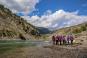 Ausgangspunkt ist das Kumsheen Rafting Resort. Nach einer herzlichen Begrüßung werden Schwimmwesten und Helmen ausgeteilt. Mit dem Bus geht es flussaufwärts nach Boston Bar, wo du nach einer Sicherheitsanweisung ins Boot steigst. Der rasante Wildwasser-Spaß führt durch zahlreiche Stromschnellen, unter anderem durch die Hell's Gate, eine besonders enge Schlucht des Canyons. Großen Wellen brechen teilweise direkt vor dem Bug und schleudern Wasser ins Boot – da heißt es: Gut festhalten! Bei allem Abenteuerspaß darf eine Stärkung zwischendurch nicht fehlen: Auf den Sandbänken am Ufer wartet in Form eines Buffets ein leckeres Mittagessen.