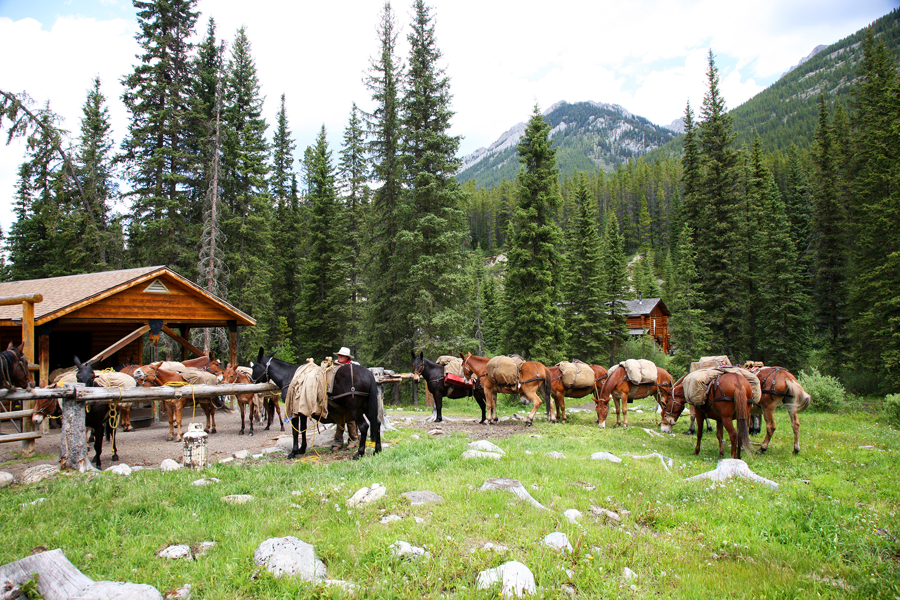Dann kann es ja los gehen: 10 Kilometer entlang des Bow River, Healy Creek und Brewster Creek Richtung Sundance Lodge. Die Route wurde bereits vor einhundert Jahren von Forschern und Abenteurern genutzt, um die kanadischen Rockies zu erkunden. Sie führt durch die unberührte Wildnis von Banff. Natürlich darf ein Zwischenstopp am Ufer der gletschergespeisten Flüsse nicht fehlen. Hier wird sich bei einem rustikales Mittagessen gestärkt – Cowboy Style versteht sich.