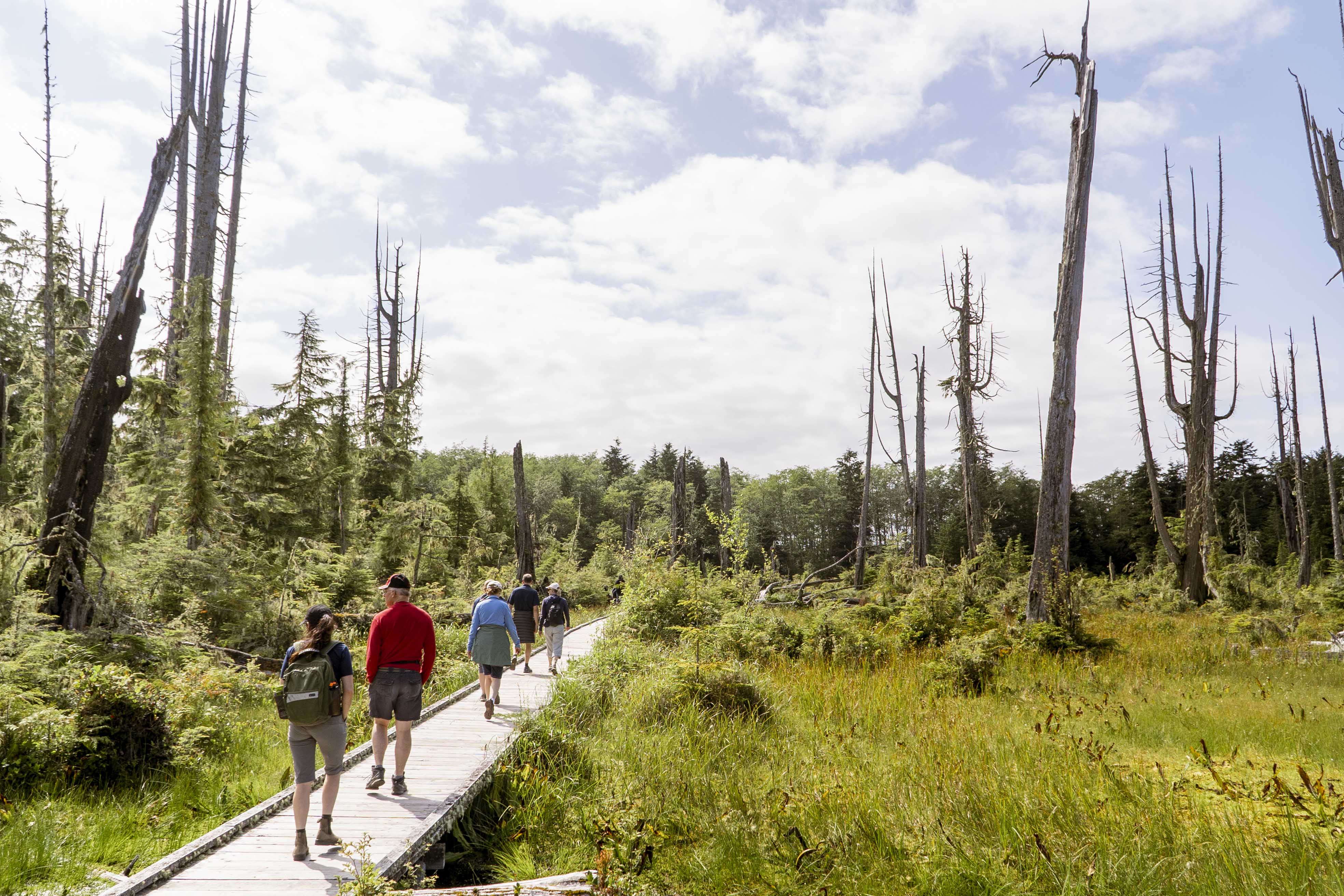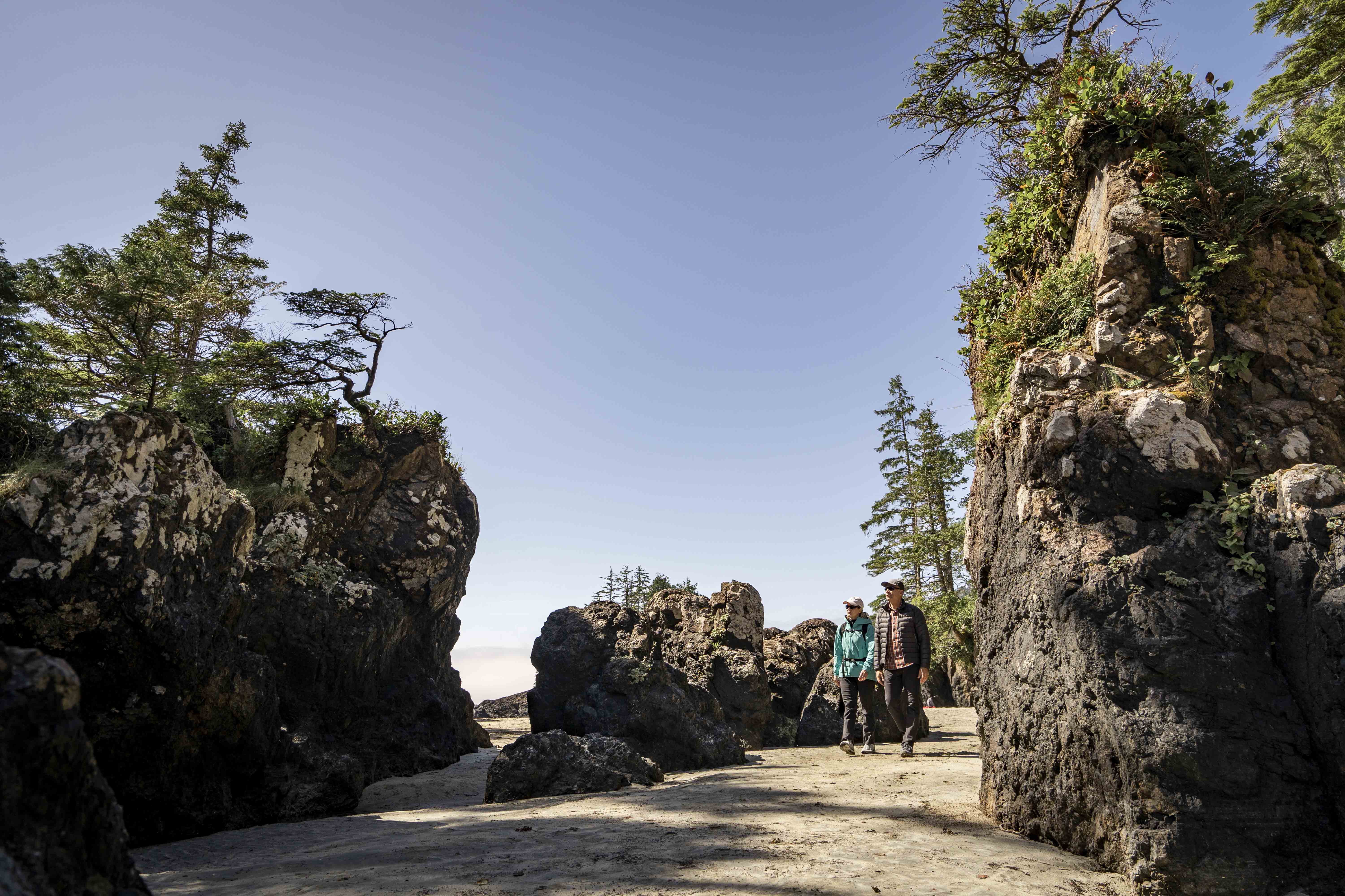 Über eine Holzfäller-Straße geht es in den Cape Scott Provincial Park im äußersten Nordwesten. Ursprüngliche Wälder und malerische Küstenlandschaften laden zum Erkunden ein und die Guides geben einen Einblick in die Geschichte der Siedler in der Bucht.