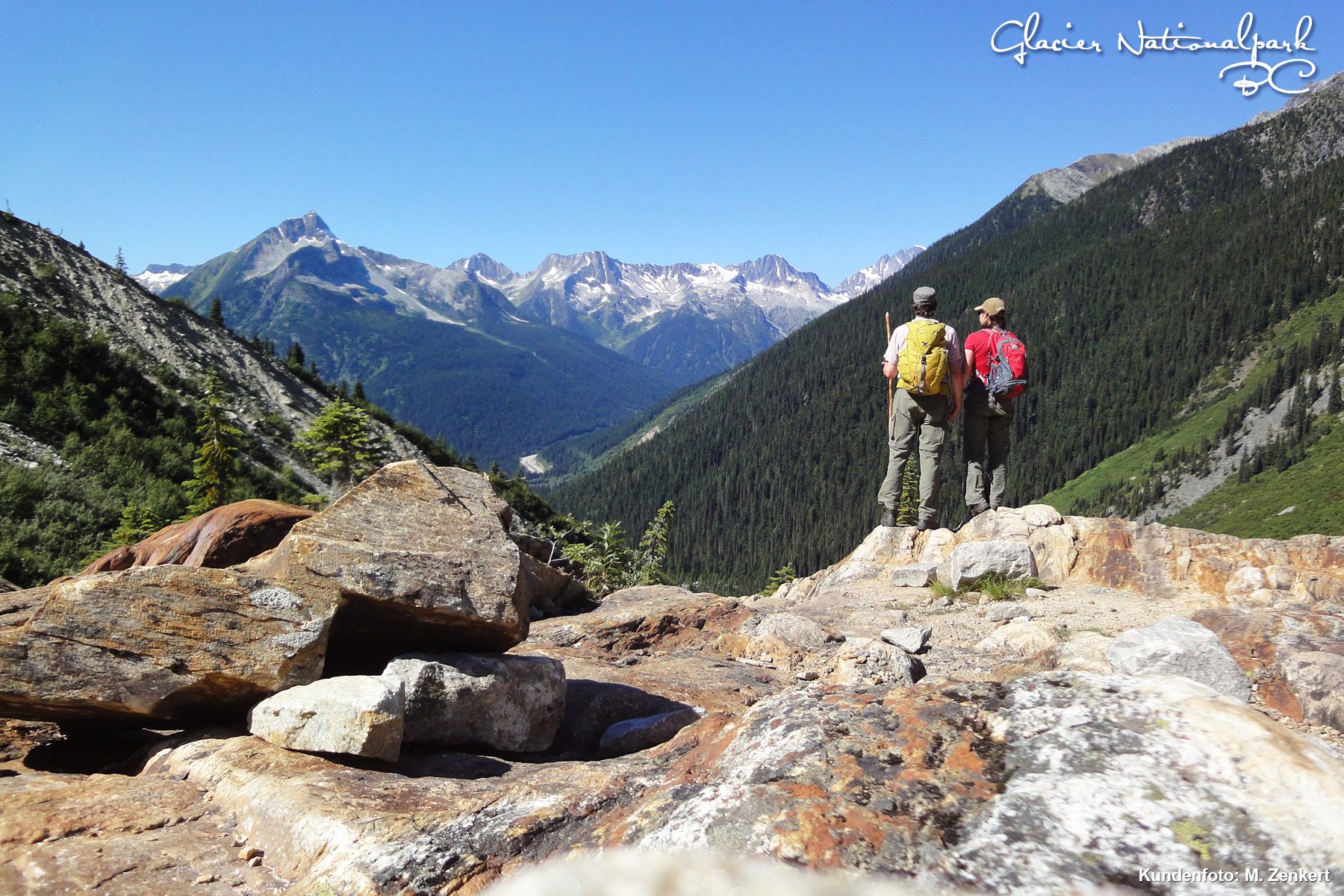 Lange Tunnel und in die fast senkrechten Berghänge getriebene Lawinengalerien weisen unmissverständlich daraufhin, dass der Trans Canada Highway hier mit besonders gefährdete Straßenabschnitten aufwartet: Willkommen im Glacier National Park! Der Park, dessen höchster Berg der Mt. Dawson (3399 Meter) ist, schützt 1349 Quadratkilometer der zerklüfteten Purcell und Selkirk Mountains. Er ist berühmt für seine über 100 Gletscher und seine spektakulären, von der letzten Eiszeit v-förmig ins Gebirge getriebenen Täler: Der Bau der Trasse für die transkontinentale Eisenbahn über den Rogers' Pass 1885 zählt nicht ohne Grund zu den spannendsten Episoden der kanadischen Geschichte. Im Jahr darauf wurde der Nationalpark gegründet, und heute ist der Park, der 53 Säugetier- und 235 Vogelarten beherbergt, vor allem ein Dorado für Kletterer. Auch Wanderer kommen auf ihre Kosten. Am Illecillewaet Campground fünf Kilometer südlich vom Rogers Pass Discovery Center beginnen acht schöne, bis zu 14 Kilometer lange Tageswanderungen in die hochalpine Wildnis
