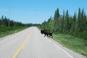 Die Northwest Territories sind 1,3 Millionen Quadratkilometer groß. Entfernungen geben die rund 40.000 Einwohner in Stunden und Tagen an. Demnach ist es ein Tag bis zum schweizgroßen Wood Buffalo National Park. Ein langer Tag, wie man mir in Yellowknife versichert, aber das Buschfeuer kurz vor dem Park sei ja jetzt unter Kontrolle, also kein Problem. Derart ermutigt, schaukle ich mit Tempo 70 um den Great Slave Lake herum, durch eine Muldenlandschaft, die der schmelzende Permafrost in den Mackenzie Highway gedrückt hat. Zu sehen gibt es nur Wald, umständehalber niedrig und poesielos, und Sand- und Kieshaufen mit davor geparkten, verlassenen Bulldozern. Alles in allem eine echte Geduldsprobe, denn in Europa hätte ich in derselben Zeit die Niederlande umrundet. Am Tagesende verstellt in Fort Smith ein gutes Dutzend grasender Büffel die Einfahrt zum Campingplatz. Als die braunschwarzen Kolosse endlich abziehen, macht der Manager Feierabend.