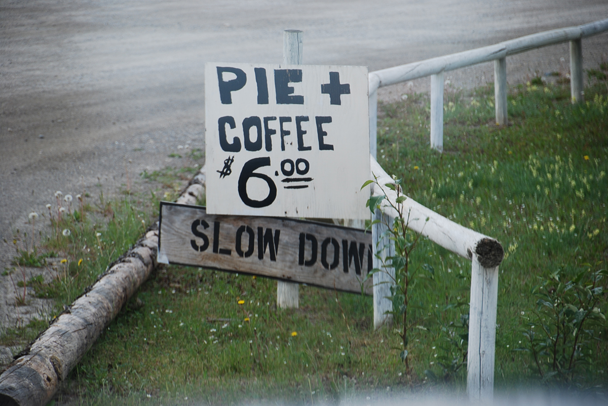 In den Northwest Territories ist der Straßenzustand das Hauptthema. Informationen zu bekommen ist jedoch so schwer, wie aus zig Hinweisen einen handfesten Tatverdacht zu filtern. Vor Fort Simpson, meiner nächsten Station, hätten Regenfälle den Mackenzie Highway unpassierbar gemacht, warnt Doug beim Abschied. Während der nächsten Tage höre ich alles Mögliche. Die Straße ist passierbar, unpassierbar, demnächst geöffnet, vielleicht aber auch nicht. Meine Quellen sind Straßenarbeiter, andere Autofahrer und sogar die offizielle Webseite von Northwest Territories Transportation. Je näher ich Fort Simpson komme, desto unruhiger werde ich. Sollte der Mackenzie tatsächlich gesperrt sein, erreiche ich nämlich nicht den Liard-Highway nach British Columbia. Dann würde mir ein 1200 Kilometer langer Umweg durch die Nachbarprovinz Alberta bevorstehen, um auf den Alaska-Highway zu kommen. Die wichtigste Überlebensregel hier oben lerne ich deshalb zwangsläufig: Tanke, sobald du eine Tankstelle siehst. Auch wenn es gerade nicht nötig ist. In Enterprise flimmert über der Straße eine digitale Hinweistafel: "Fort-Simpson-Fähre in Betrieb". Erleichtert und mit vollem Tank fahre ich auf einem staubigen Gemisch aus Asphalt, Sand und Schotter weiter. Drei Stunden später an einer Baustelle im Nirgendwo erreicht mich die Hiobsbotschaft: Fährbetrieb eingestellt, wegen technischer Probleme. Umkehren geht nicht mehr, die Tankstelle in Enterprise liegt inzwischen außer Reichweite. Die einzige andere ist in Fort Simpson auf der anderen Seite des Liard River. Was tun? "Fahre bis zur Anlegestelle und kampiere da", sagt ein Arbeiter und grinst: "Kann sich nur um ein paar Tage handeln." Ein Autofahrer, den ich etwas später anhalte, kommt von dort zurück. "Die warten jetzt auf ein Ersatzteil. Aber wann das eingeflogen wird, weiß keiner."