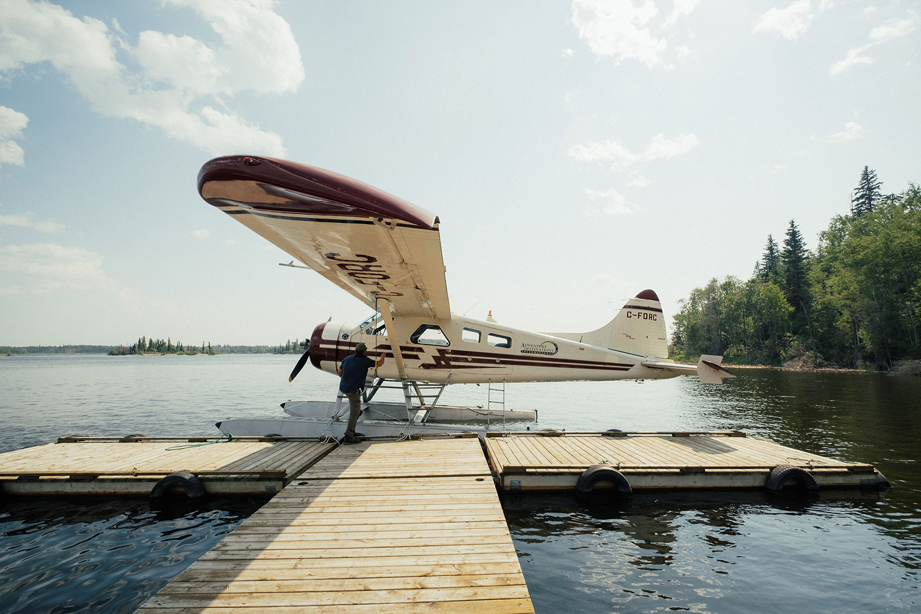 Nach dem Frühstück auf der Restaurantterrasse geht es zum Dock, wo bereits das Wasserflugzeug bereitsteht. Der Flug zur Lodge dauert nur kurze 15 Minuten und dennoch bieten sich beeindruckende Ausblicke auf Saskatchewans Seenlandschaft, in denen du in den kommenden Tagen unterwegs sein wirst.