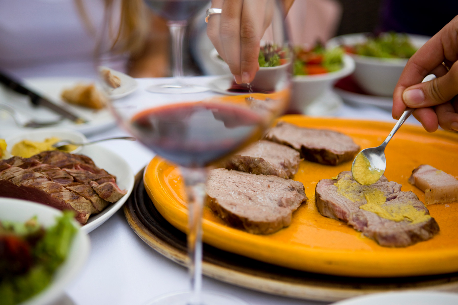 - Auf Wunsch bekommst du zu jedem Gang einen ausgewählten Wein gereicht (zubuchbar für EUR 24 p.P.).