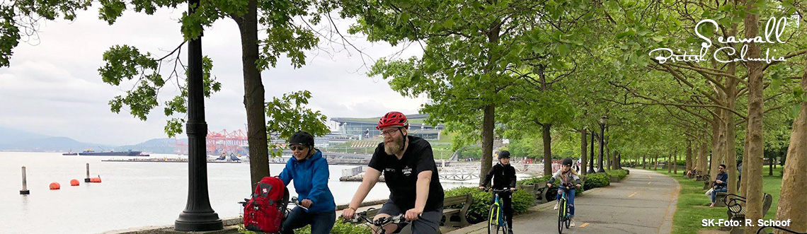 Wir schlendern hinüber zur Hornby Street. Zum kleinen aber feinen Laden von Cycle City Tours Vancouver. Hier startet unser nächstes Vancouver-Abenteuer. Auf einer geführten Raddtour soll es durch den Stanley Park gehen. Das wollte ich schon immer einmal machen. Im Laden kommt direkt unser gut gelaunter Guide auf uns zu. Adam heißt er und lebt eigentlich in Victoria. Für den Sommer kommt er aber nach Vancouver – des Radelns wegen. Es mache ihm so viel Spaß, mit seinem Rad durch die Stadt und den Park zu gondeln und dabei sein Wissen an dankbare Mitradler weiterzugeben. Na, hört sich doch gut an!
