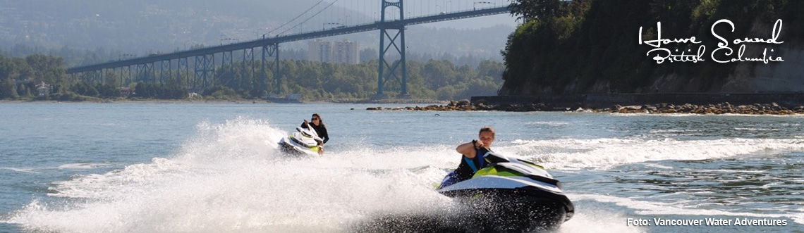 Jetski Tagestourab/bis Vancouver, B.C.Der ultimative Tag auf dem Wasser! Du fährst durch die Inselgruppe der Howe Islands und besuchst einzigartige Orte entlang der Küste. Du fährst an zwei verschiedenen Robbenkolonien, Weißkopfseeadler-Habitaten, der Horseshoe Bay und dem gemäßigten Küstenregenwald im Howe Sound hinter Gambier Island vorbei. Dein Guide kennt alle versteckten Buchten und besten Orte für den perfekten Ausblick oder einen Sprung ins kühle Nass. Diese 7-stündige Tour beinhaltet zudem ein Mittagessen in der Stadt Gibsons an der Sunshine Coast.