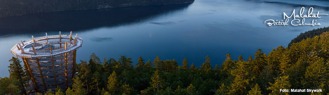 Malahat Skywalkin Malahat, B.C.Erklimme die spiralförmige Rampe zum Gipfelabenteuer. Auf 250 m über dem Meeresspiegel bietet der Turm eine der besten Aussichten auf Vancouver Island, einschließlich eines weitreichenden Panoramas von Mt. Baker, Finlayson Arm und der Saanich Peninsula. Erkunde die Westküste aus einer völlig neuen Perspektive und wähle dann deinen Abstieg, indem du die Rampe hinuntergehst oder auf schnellem Wege mit der Spiralrutsche zurück zum Start kehrst.