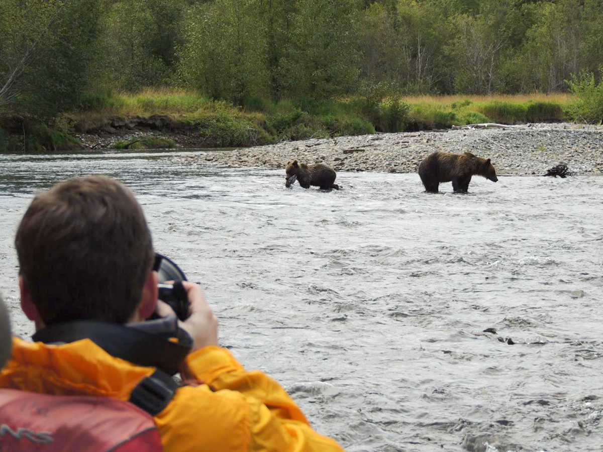 Das Tal des Burke Fjord, durch das die beiden Flüsse Atnarko und Bella Coola River fließen, verspricht zur Zeit des Lachsaufstiegs sehr gute Möglichkeiten zur Grizzlybeobachtung. Deine Exkursionen führen dich in die ursprüngliche Wildnis im und rund um den Tweedsmuir Park. Das Besondere an den Wildnisexkursionen ist, dass es sich um "Floating Trips" handelt. An der Einsetzstelle lässt du das stabile Exkursions-Raft oder -Boot zu Wasser und treiben dann mit der Strömung bis zum Endpunkt der Tour. Während du lautlos durch die Wildnis gleitest, hast du die Gelegenheit, Tiere zu beobachten, ohne diese zu stören. Erfahrene Guides und Biologen begleiten die Touren, um dir Detailwissen über die Schwarzbären und Grizzlies der Region und ihre Gewohnheiten zu vermitteln.
