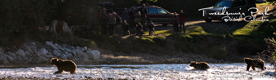 4, 5 oder 6 Tage Grizzlies im Great Bear Rainforestab/bis Tweedsmuir Park Lodge, B.C.Das Tal des Burke Fjords ist eines der wenigen Fjordtäler an der Westküste, die auf dem Landweg erreicht werden können. Durch das Tal fließt der Atnarko River und speist den in den Fjord mündenden Bella Coola River. Bestes Grizzly-Terrain. Ideal für die Beobachtung der großen Bären, gerade zur Zeit des Lachsaufstiegs.