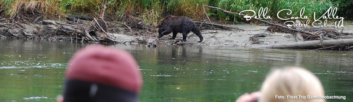 Das Tal des Burke Fjord, durch das die beiden Flüsse Atnarko und Bella Coola River fließen, verspricht zur Zeit des Lachsaufstiegs sehr gute Möglichkeiten zur Grizzlybeobachtung. Deine Exkursionen führen dich in die ursprüngliche Wildnis im und rund um den Tweedsmuir Park. Das Besondere an den Wildnisexkursionen ist, dass es sich um "Floating Trips" handelt. An der Einsetzstelle lässt du das stabile Exkursions-Raft oder -Boot zu Wasser und treiben dann mit der Strömung bis zum Endpunkt der Tour. Während du lautlos durch die Wildnis gleitest, hast du die Gelegenheit, Tiere zu beobachten, ohne diese zu stören. Erfahrene Guides und Biologen begleiten die Touren, um dir Detailwissen über die Schwarzbären und Grizzlies der Region und ihre Gewohnheiten zu vermitteln.