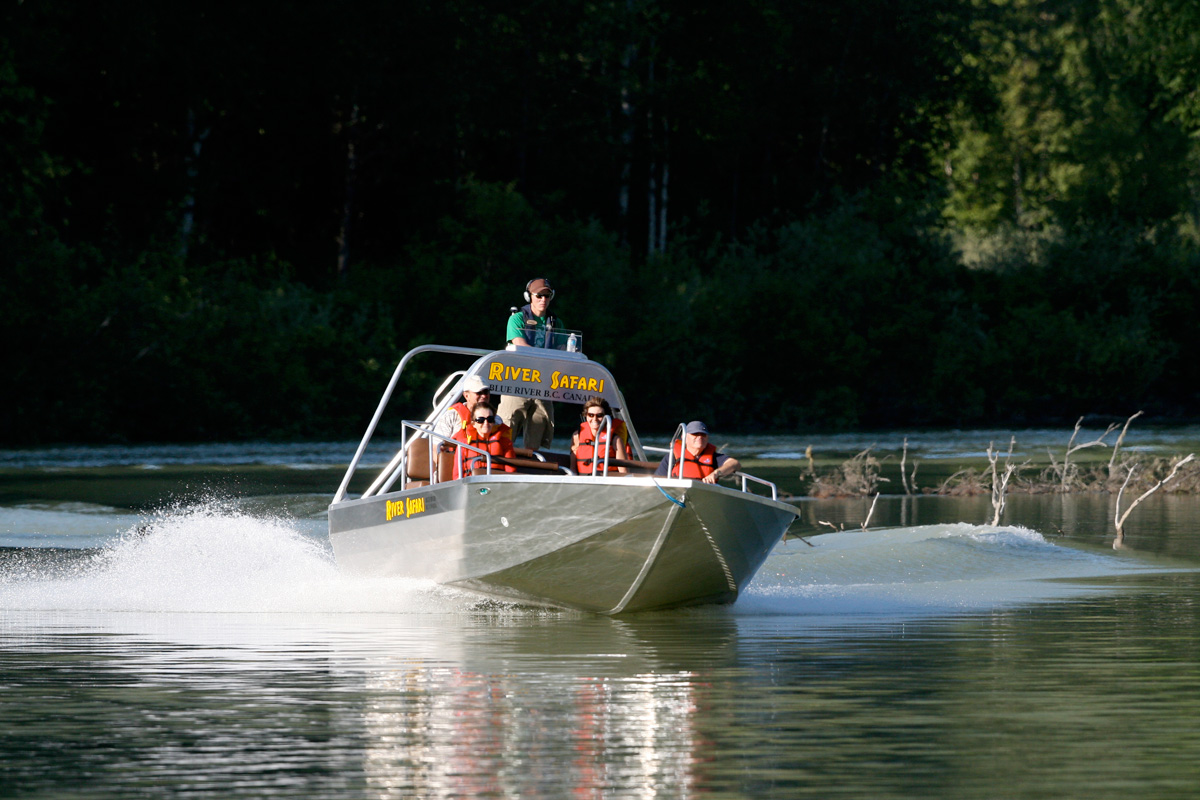Besuche das einzigartige "Grizzly Bear Valley" - ein idealer Stopp zwischen Jasper und dem Wells Gray Park. Das Tal liegt im weltweit einzigen im Inland liegenden temperierten Regenwald – mit einer unvergleichlichen Landschaft. Per Jetboat geht es über kleine Flüsse, die von hoch aufragenden Bergen gesäumt sind. Halte deine Augen offen und die Kamera bereit! Mit etwas Glück kannst du am Flussufer Elche, Schwarzbären und Adler sehen. Vielleicht ja sogar einen der scheuen Grizzlies der Region! Bei maximal zehn Personen im Boot ist es möglich, in die Nähe der Tiere zu fahren, ohne sie zu stören.