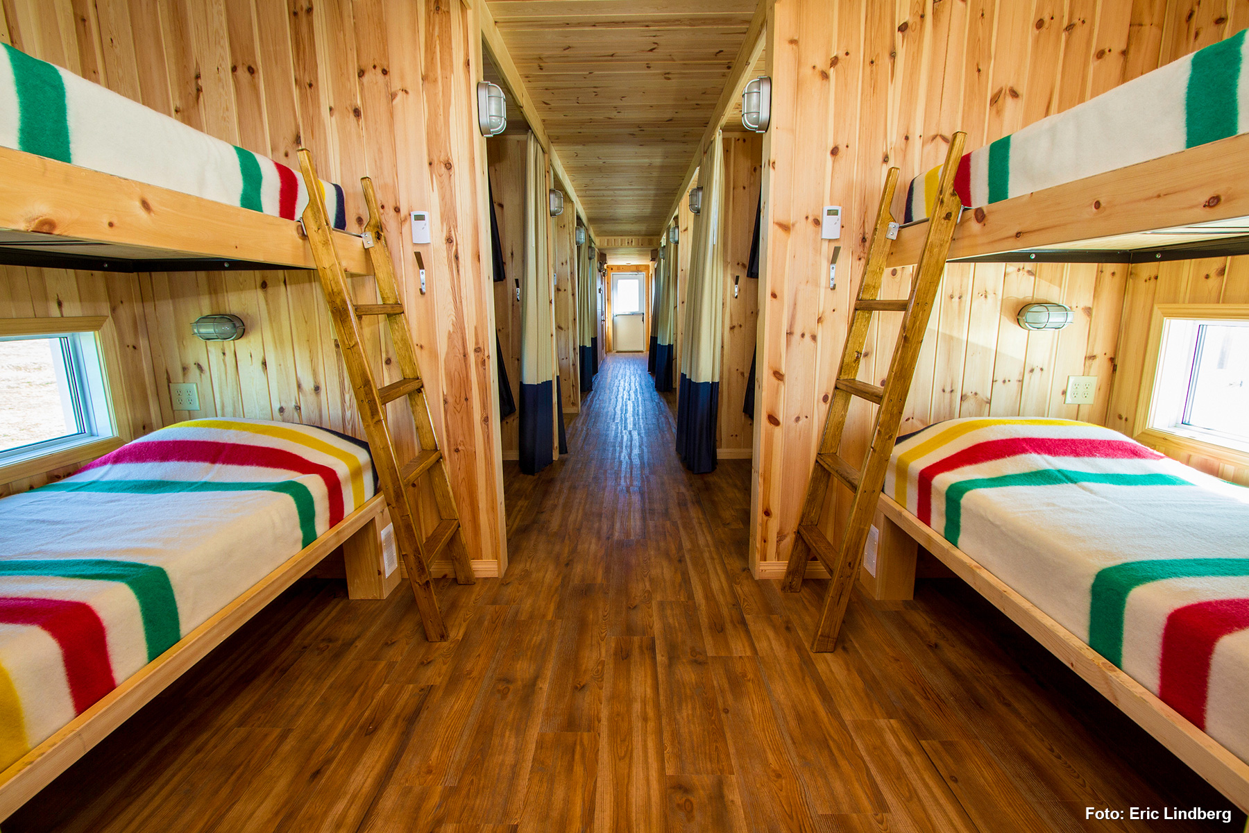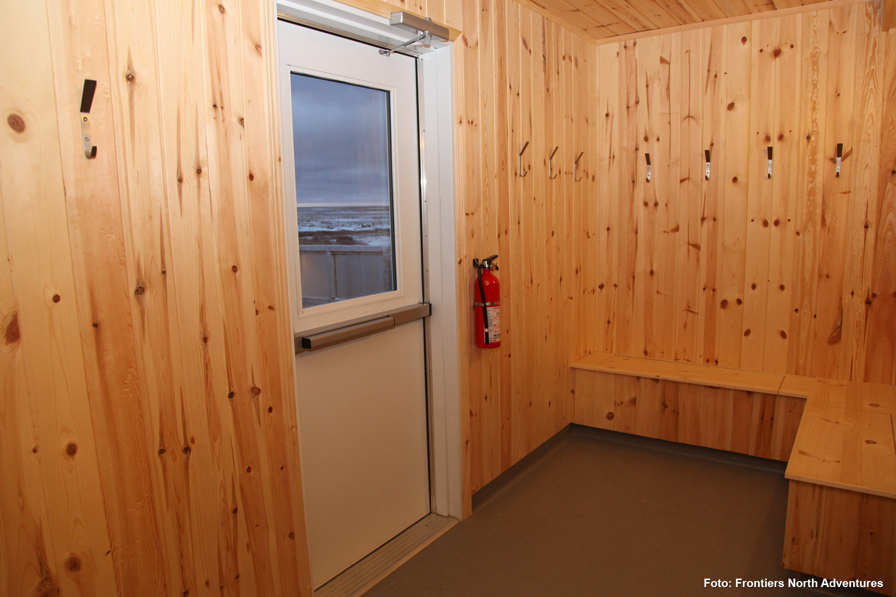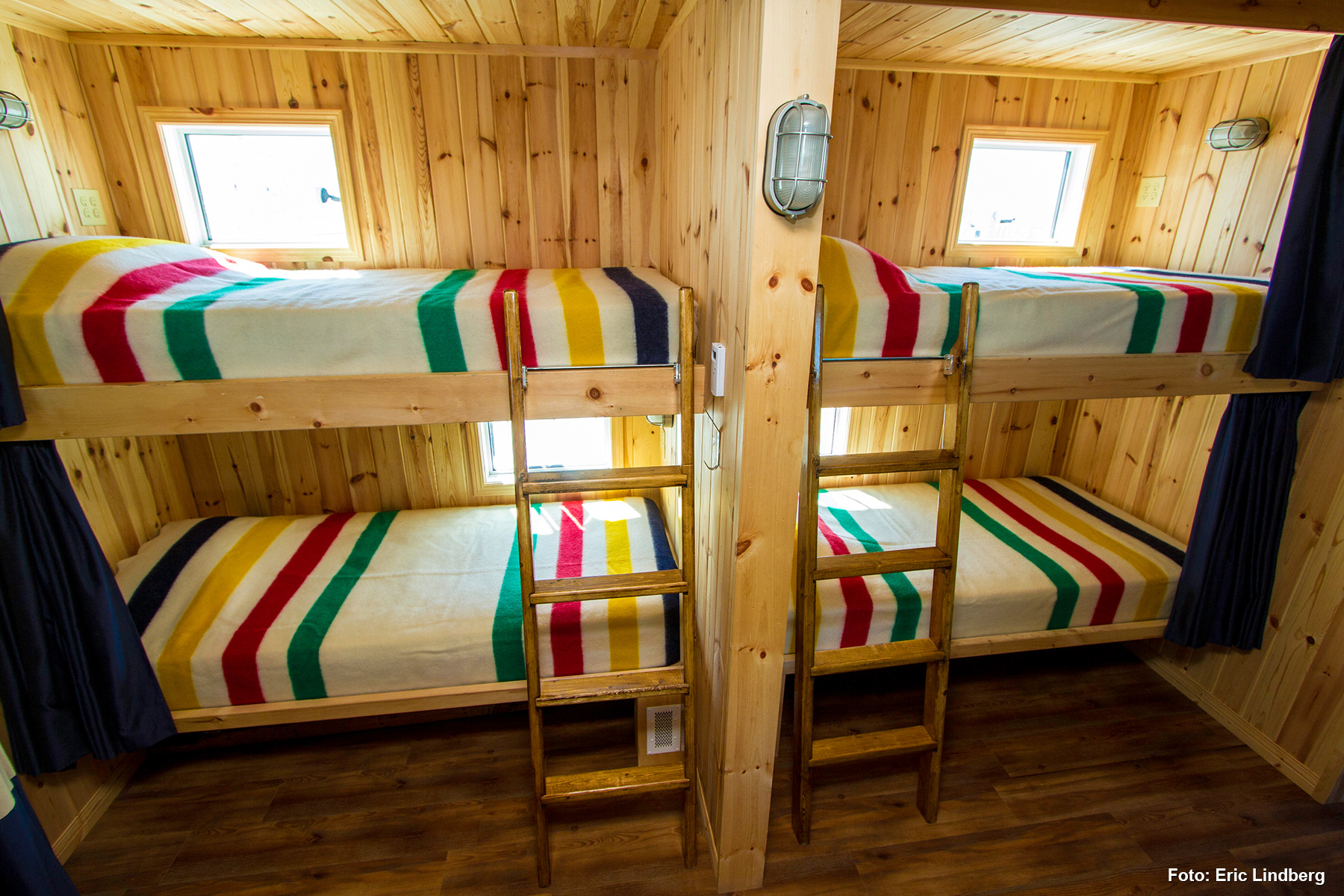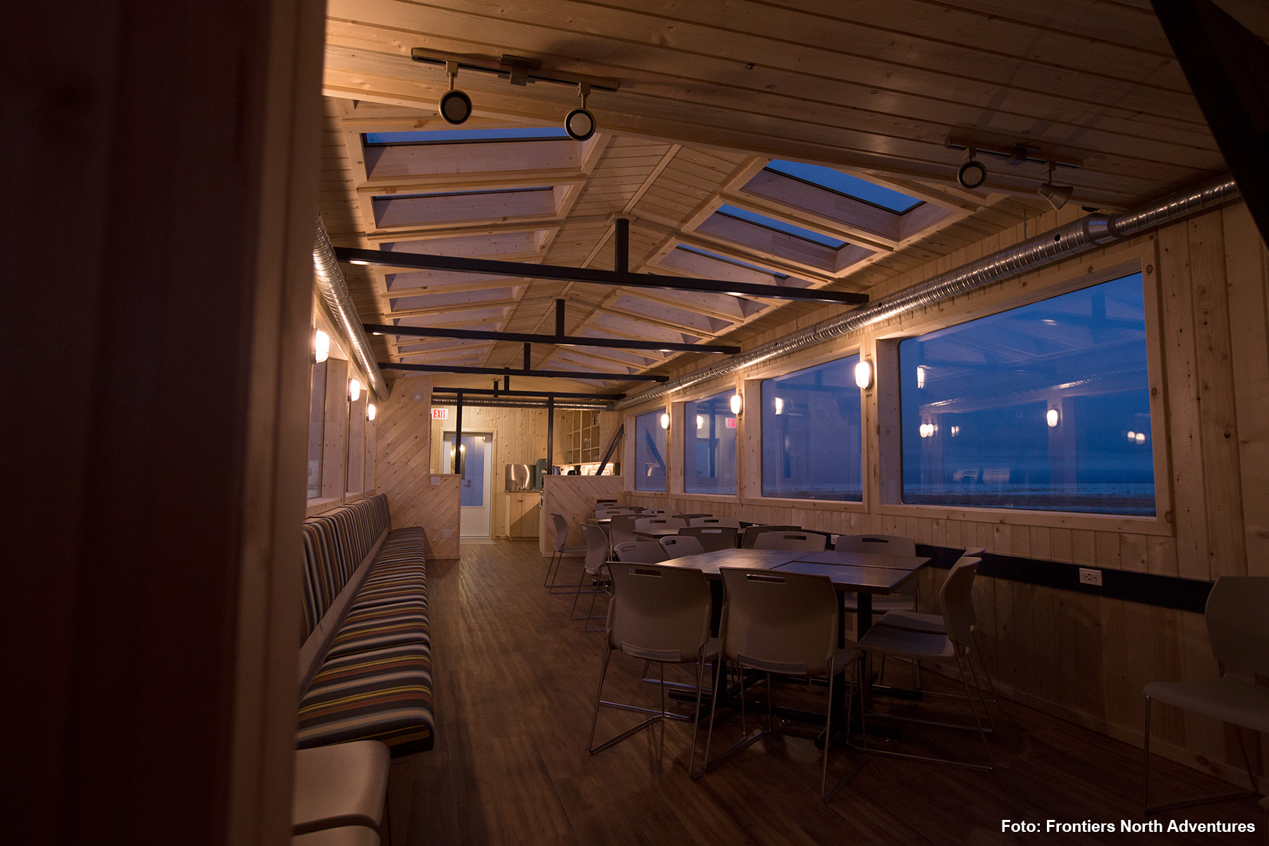 Standort der Lodge ist Polar Bear Point, knapp 50 Kilometer östlich von Churchill und nahe dem Ufer der Hudson Bay. Zwei der Buggy-Module dienen als Liegewagen-Schlafabteil (inkl. Gemeinschaftsbad), eines als Aufenthaltsraum. Die Unterkunft im Schlafmodul-Buggy gleicht einem Zug-Schlafwagen mit Trennvorhängen zwischen den privaten Schlafbereichen. Ein Modul ist der "Speisesaal". Stell dir vor: Ein Dinner umgeben von Polarbären! Das Areal um den Wagen wird dafür beleuchtet. Alle Module sind über Plattformen miteinander verbunden, so dass sichere Bärenbeobachtungen von überall möglich sind. Ein Tundra Buggy steht für deine täglichen Exkursionen zur Verfügung.