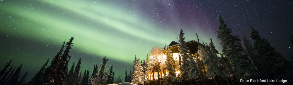 In der Hauptlodge befinden sich zusätzlich zu den fünf Gästezimmern eine Lounge, der Speiseraum, eine Bar, die Waschräume und der "Aurora Room", in dem in entspannter Atmosphäre die Nordlichter beobachtet werden können. Auf einem der Sonnendecks gibt es einen Whirlpool. Auf dem weitläufigen Gelände der Lodge befinden sich fünf gemütliche Blockhäuser für bis zu fünf Personen, die über einen Holzofen, Gasherd, Gaslampen und Kaffee-/Teezubereiter verfügen. Im Haupthaus gibt es ein Plumpsklo, ansonsten Outhouse-Toiletten. Nach einer Wanderung, Angeln auf dem See oder Kanuexkursionen kannst du dich auf die Vollverpflegung der Lodge freuen, die im Preis enthalten ist.