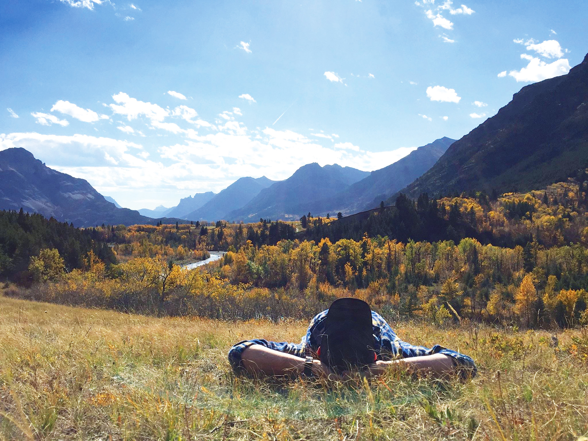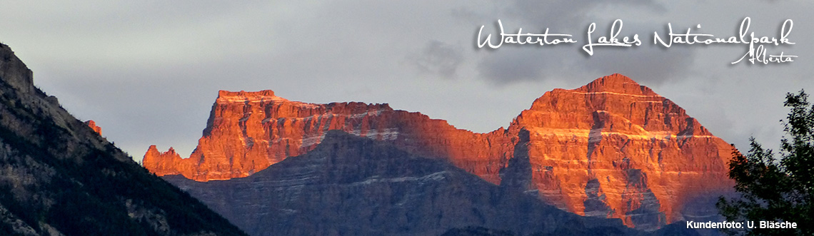 Der vergleichsweise kleine Waterton Lakes National Park in der Südwestecke von Alberta ist für mich einer der schönsten des Landes. Ich mag die Berge. Und die endlose Prärie. Hier habe ich beides. Wo ich war? Auf dem Bears Hump hoch über dem Ort Waterton das Panorama bestaunt. Auf dem Red Rock Parkway in das Blakiston Valley hinein und die Herbstfarben genossen. Irgendwann einfach ins Gras gefallen und einfach nur die Aussicht genossen. Im Bison Paddock Büffel aus nächster Nähe beobachtet. Auf dem Highway 5 den Park kurz verlassen, um in Mountain View Diesel zu tanken und dabei immer wieder diesen magischen Schnittpunkt von Prärie und Bergen fotografiert. Bei meiner Rückkehr im Park fielen gerade die letzten Strahlen der Sonne auf das berühmte Prince of Wales Hotel. Es war ganz einfach ein wunderschöner Tag in diesem tollen Park!