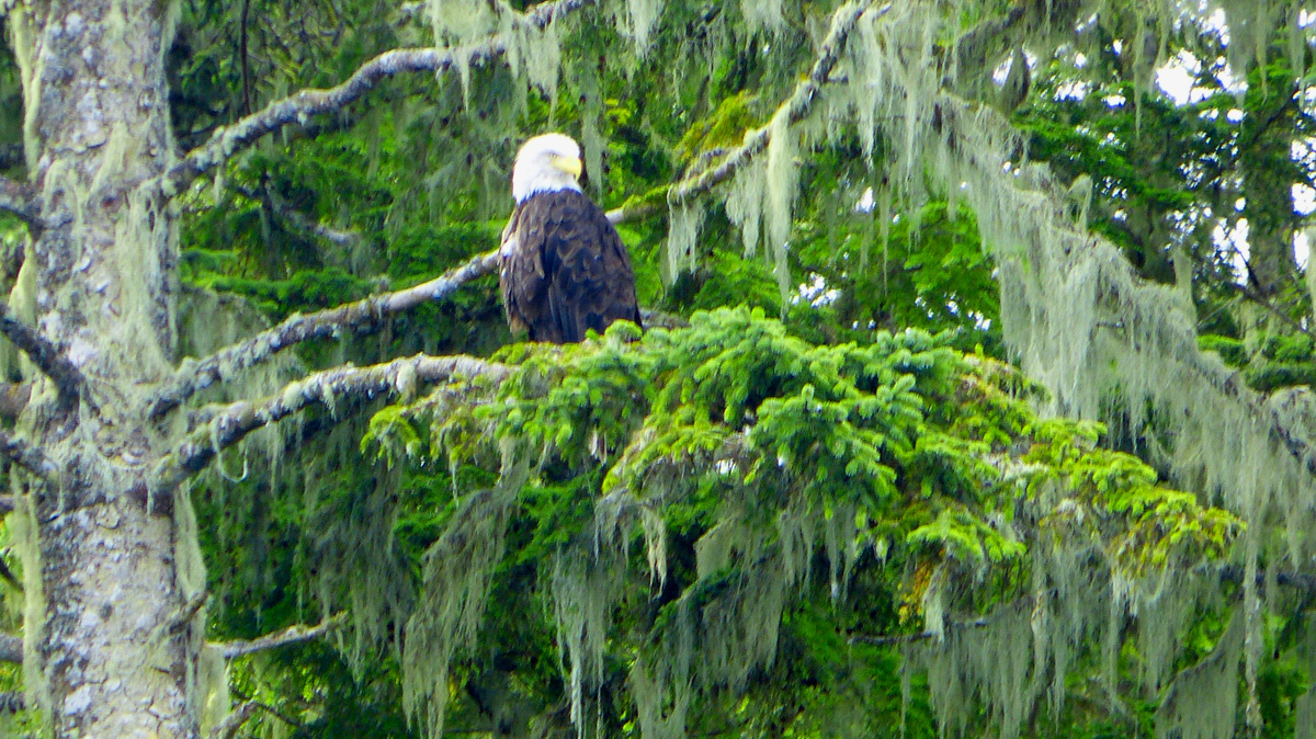 Heute warten die Bären auf uns! Nach üppigem Frühstück mit Eiern, Speck, Bohnen und Süßkartoffeln brechen wir auf zu Jamies. In einem Jetboot geht es hinaus zwischen die Inseln und nach schneller Fahrt wird auch schon der erste Bär gesichtet. Es folgt eine Bärenmutter mit zwei kleinen Jungen von ca 4 Monaten, die sich bei Annäherung des Bootes schnell trollen. Später sehen wir noch eine Bärin mit 3 Jährlingen. Das Boot bringt uns immer sehr nah ans Ufer und die Bären lassen sich nicht stören. Fleißig drehen sie Steine um und knacken die Muscheln, die sie dort finden. Zwei Weißkopf Seeadler kreisen über uns und auf kleinen Inseln räkeln sich Robben (rock sausages - weil sie für Orcas eine leichte und fette Beute sind). Wir sehen insgesamt mehr als 10 Schwarzbären. Die Tour war toll und zur Belohnung gibt es danach eine Chowder mit Prawns am Imbiss von "Big Daddy". Ein kleiner Abstecher führt uns noch nach Uculet, bevor wir zurück über die Passstraße bis zum Upper Strout Lake Provincial Park fahren. Auch dieser CG liegt schön im Wald. Heute will unser feucht gewordenes Feuerholz nicht brennen und wir haben viel zu Lachen und Luft zu fächeln bis endlich die Flammen lodern.