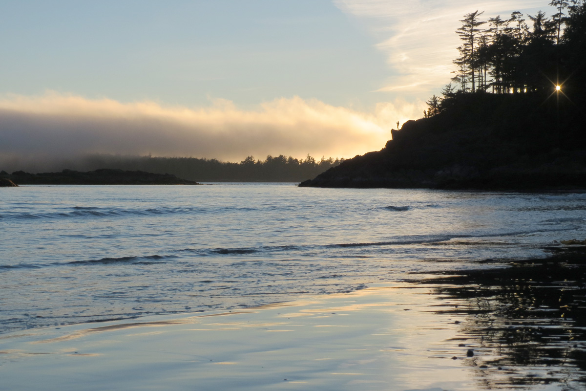Start ab Bamberton um 9:15 Uhr. Über # 1 bis # 19 und von Coombs auf die # 4. Erster Halt an Qualicum Falls um 11:05 - 12:10 zu Lower und Upper Falls. Weiter nach McMillan (Cathedral Grove) , wo Rotzedern und Douglasien seit 300 - 800 Jahren den letzten ursprünglichen Wald repräsentieren. Dort wieder 1 Stunde Spaziergang. Dann weiter Richtung Tofino mit einer kurzen Ruhepause. Die Müdigkeit hat uns überfallen und wie legen ein Schläfchen ein. Die letzte Etappe bis Ucuelet ist schmal und kurvenreich, es geht wieder in bergige Regionen und dichter Wald begleitet uns. Ab dem Abzweig nach Tofino ist alles wieder flach. Der CG Green Point im Pacific Rim National Park liegt direkt am Meer und trotzdem mitten im Regenwald. Nachdem wir in Tofino bei Jamies für morgen 11 Uhr unsere Bärentour gebucht haben und einen kleinen Gang durch das verschlafene Städtchen gemacht haben, geht es zurück zum CG wo wir unser Abendessen mit Sacchettini, Newman's Own Tomatensoße und Salat draußen verzehren bei unserem letzten Glas Rotwein. Zuvor gab es noch einen Spaziergang zum "breiten Strand" bei Ebbe und hoher Wellenwarnung. Den Stand der Ebbe hatten wir aus der Gezeitentabelle bei Bamberton abgelesen. An der Straße begleiteten uns Schilder mit Tsunami Evakuierungsrouten.
